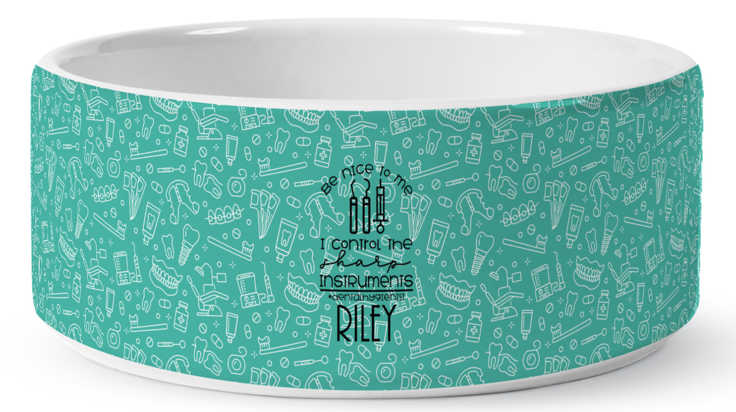 Our customized, ceramic dog bowls allow you to fashion a durable, yet expressive gift for your pet. These bowls are fashionably versatile; they suit both cats and dogs and can hold either food or water. Add your pet's name or favorite color to the design, and spruce up his/her eating area with one or two personalized pet bowls!