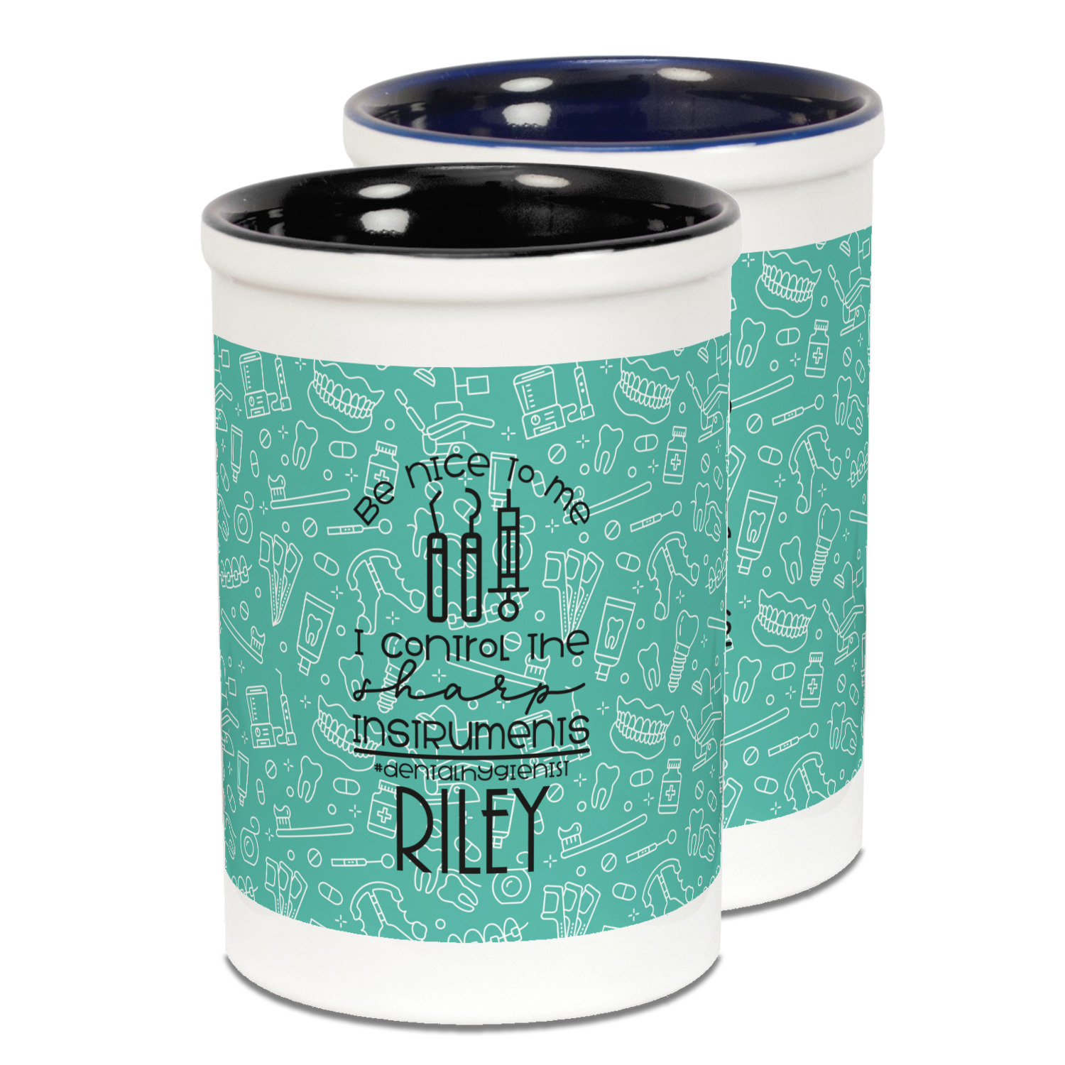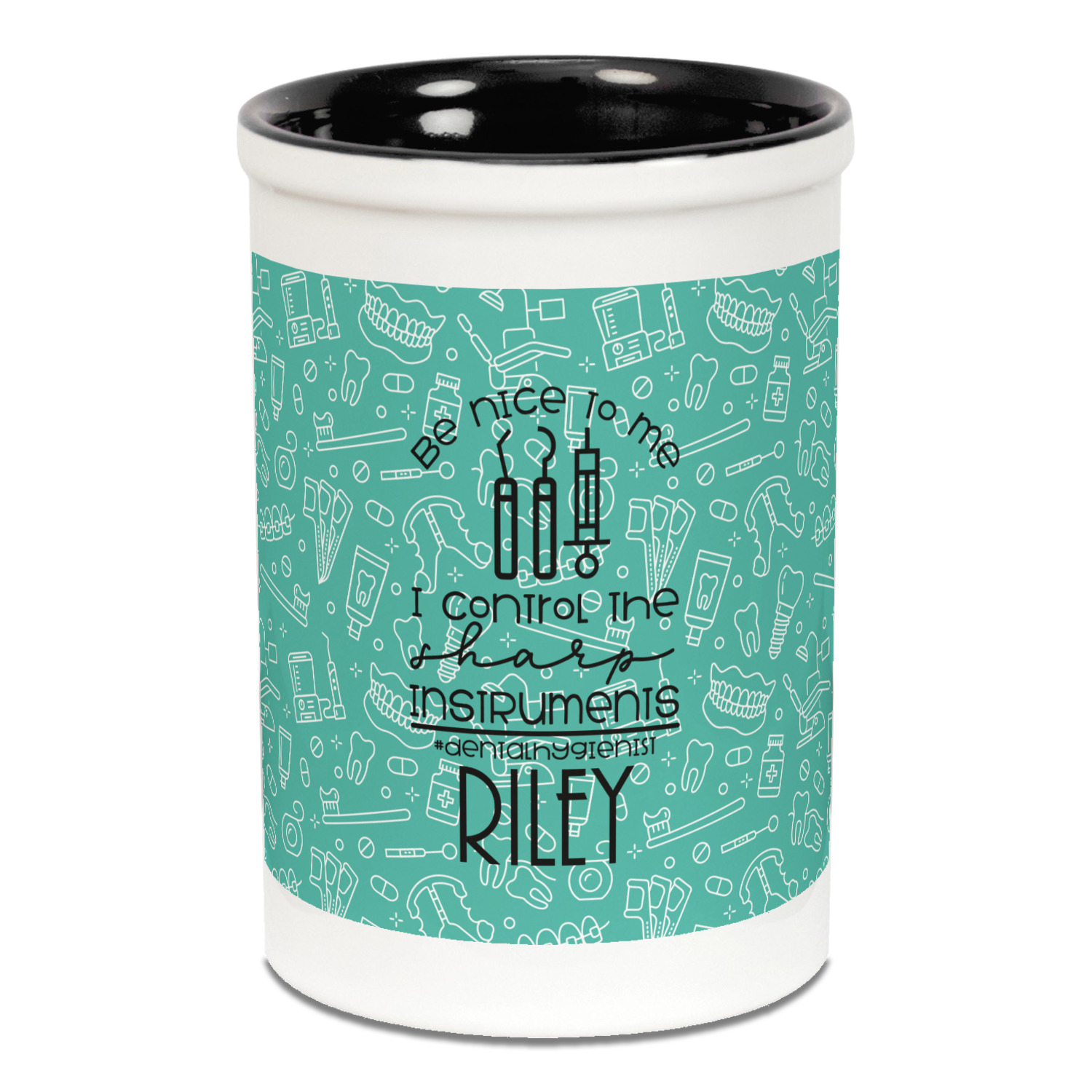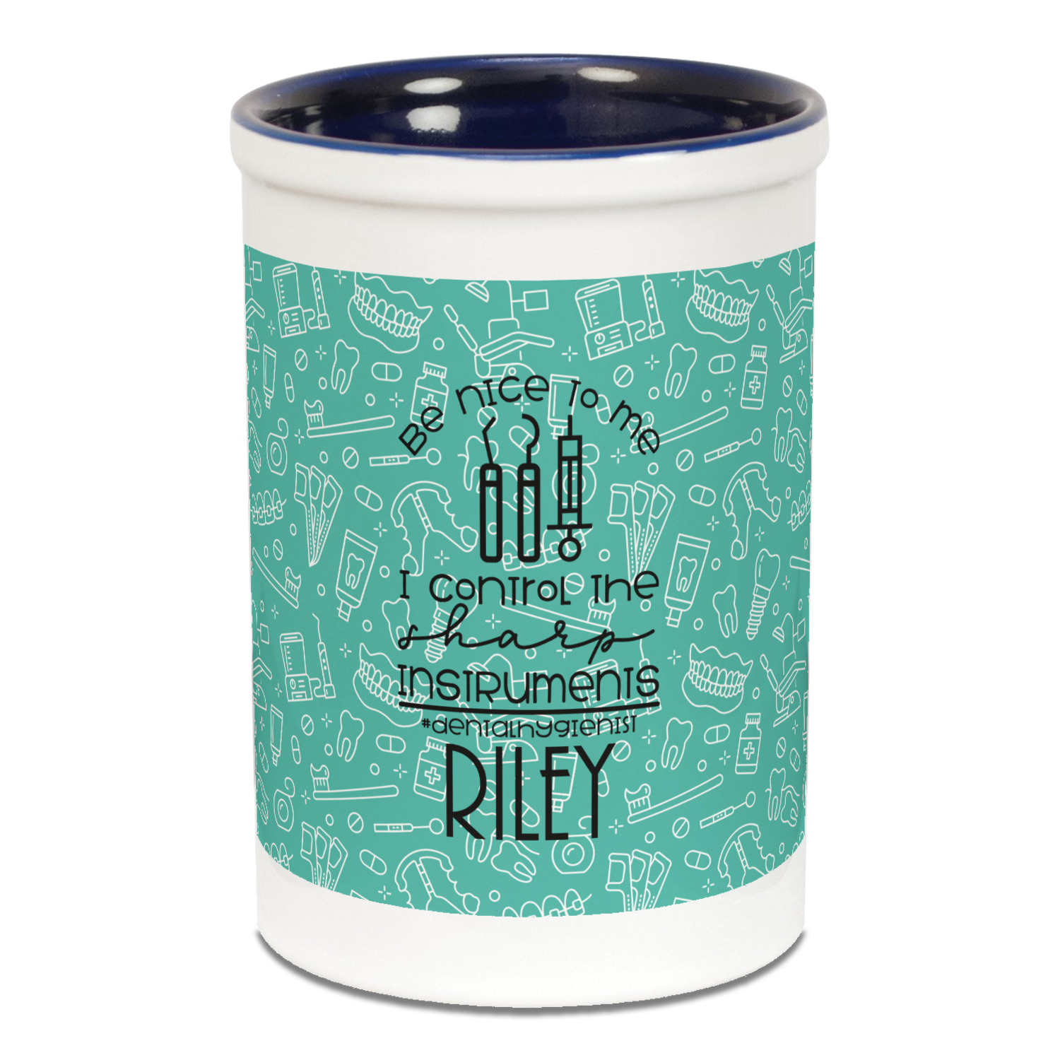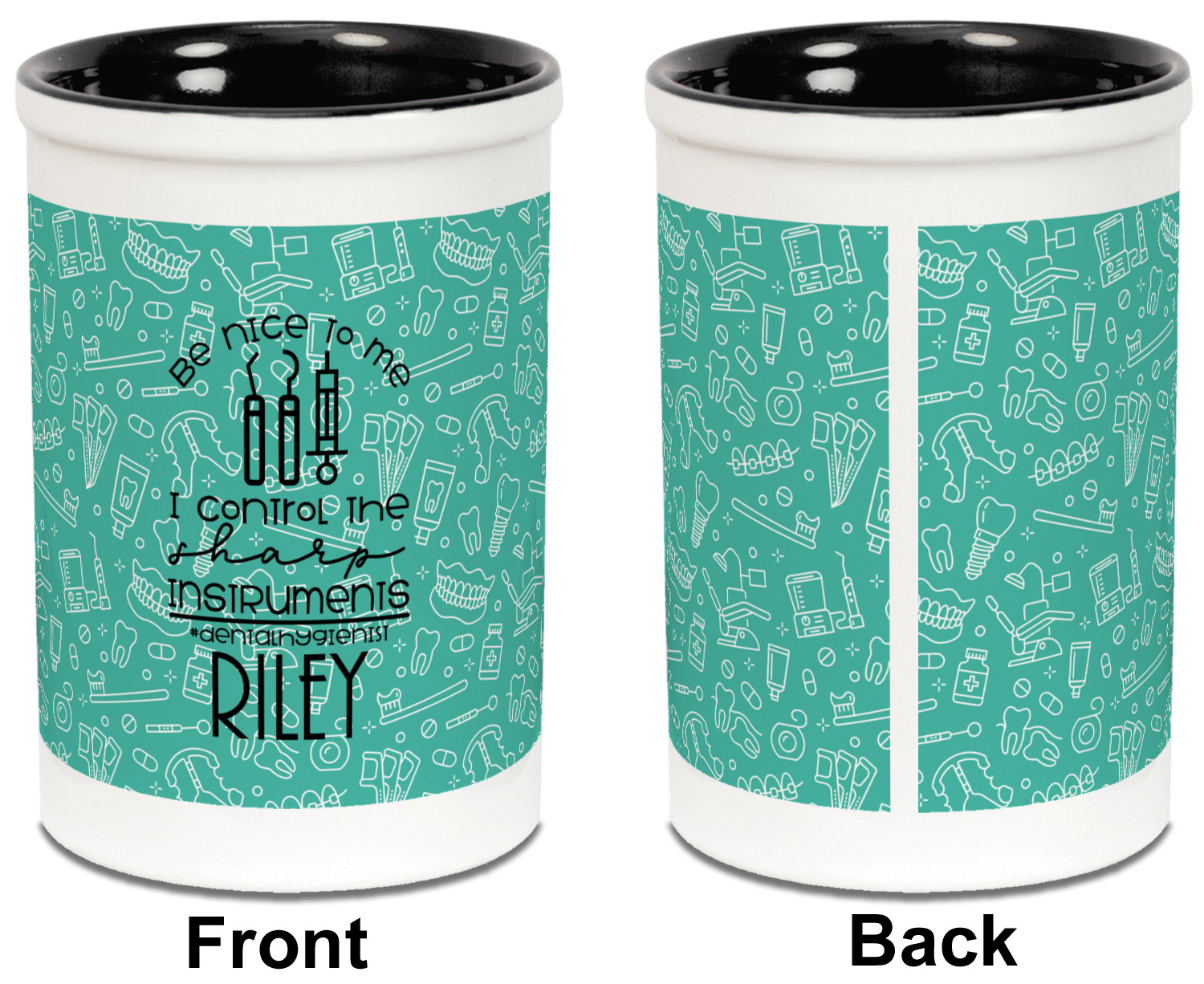 For the foreground, we used a fun quote that says "Be nice to me, I control sharp instruments #dental hygienist"Dental Hygienists bring the sparkle". We chose to personalize it with a name underneath. We used black for our color. You can customize the graphics, the colors as well as the personalization. Enjoy customizing it to make it yours.