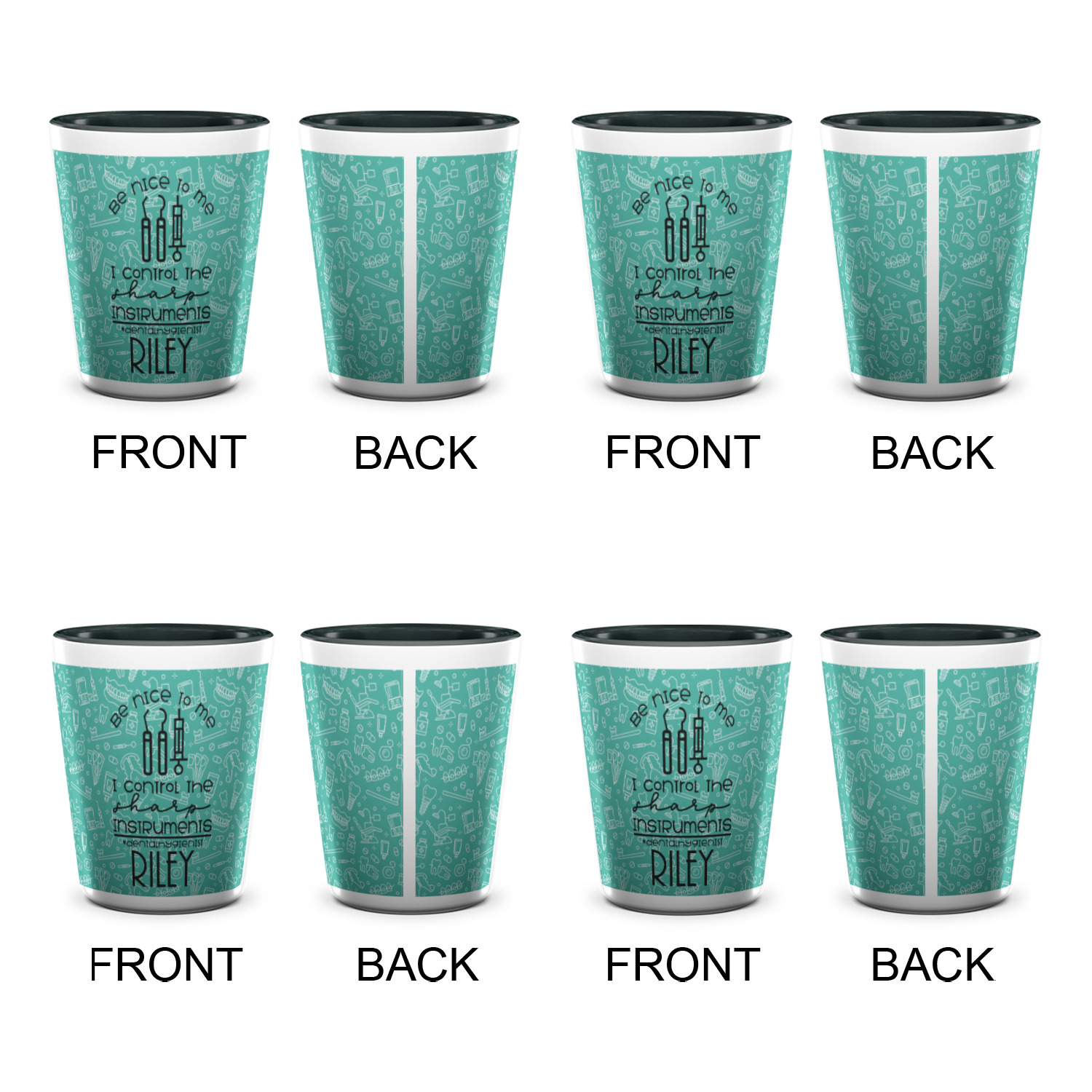 Made from ceramic these shot glasses are printed in full color with the design of your choice. These are a standard 1.5oz size and stand 2.25" tall. Available in a full white ceramic or a two-tone with a black color inside the shot glass. Buy a single or a set of 4, all of which can be designed separately to get you just what you want and need.