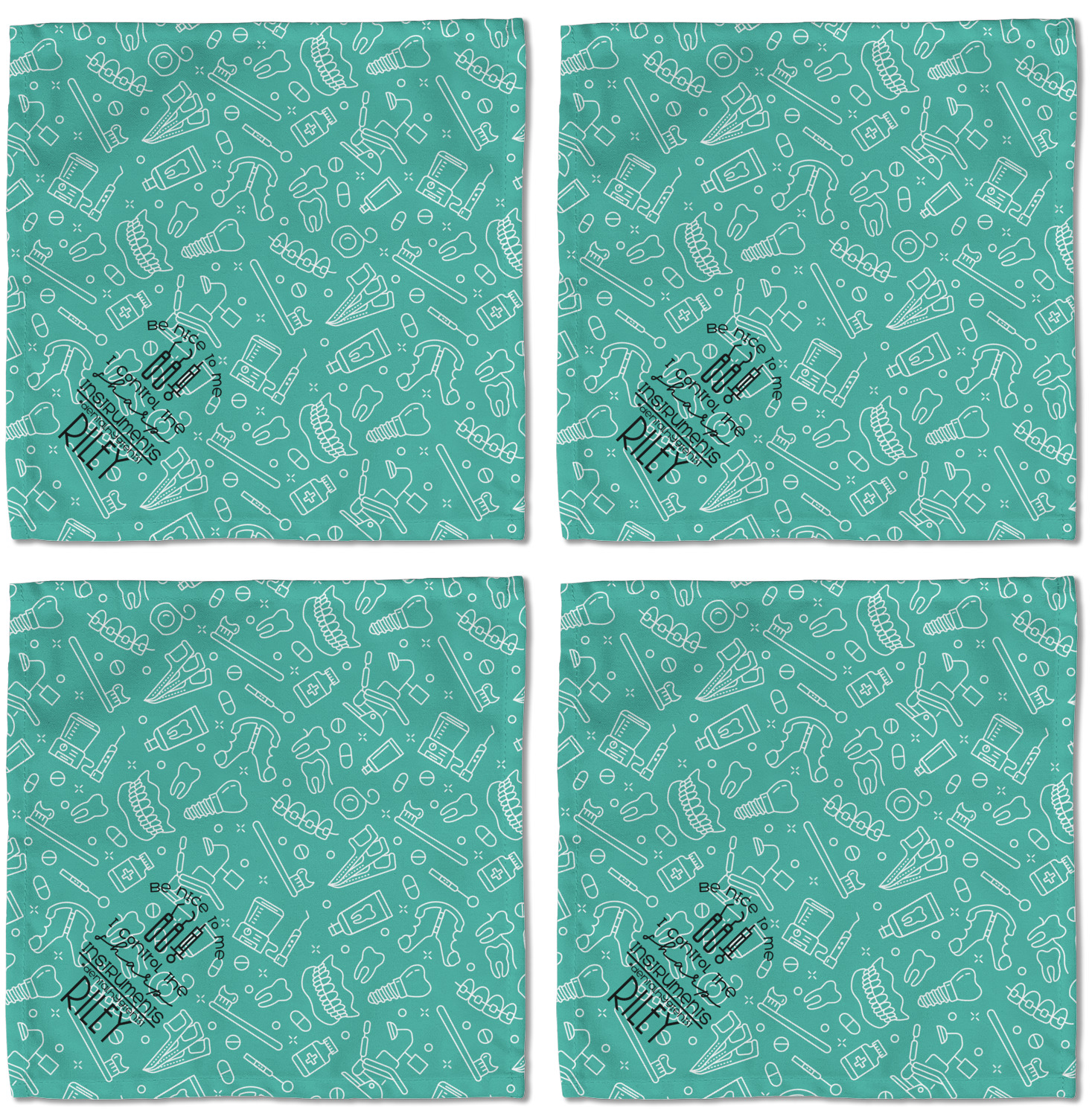 We choose a scrubs green background with line drawings of dental instruments in white. Both colors can be customized. We also have other dental themed backgrounds and hundreds of fun patterns that can easily be swapped out.