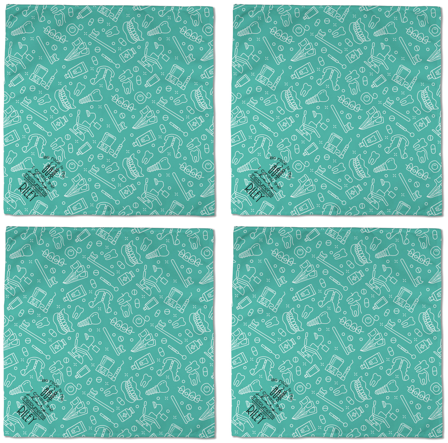 We choose a scrubs green background with line drawings of dental instruments in white. Both colors can be customized. We also have other dental themed backgrounds and hundreds of fun patterns that can easily be swapped out.