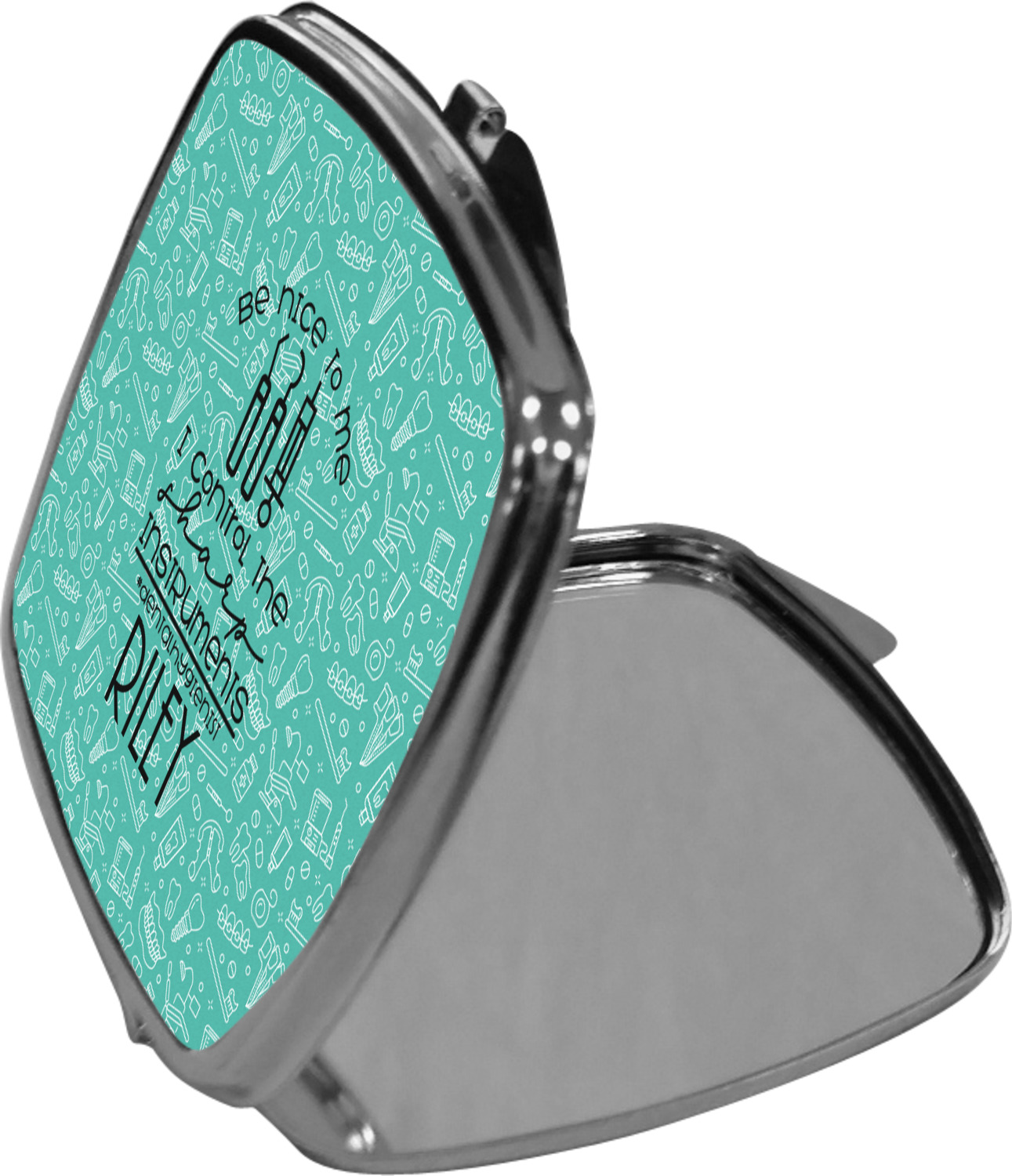 We offer many prints and patterns and many of our patterns are available in 45 different colors. You can personalized the compact mirrors with a name, a monogram or just an initial. We offer several different label, ribbon and font choices. Our customization system lets you create your very own custom & unique product and it lets you preview it before you purchase.