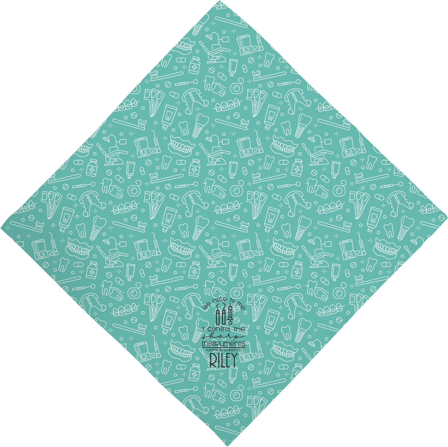 We choose a scrubs green background with line drawings of dental instruments in white. Both colors can be customized. We also have other dental themed backgrounds and hundreds of fun patterns that can easily be swapped out.