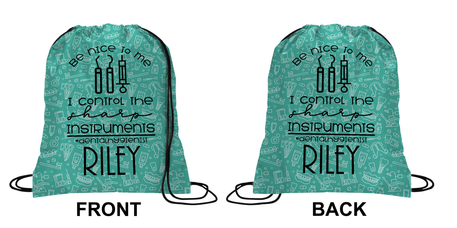 For the foreground, we used a fun quote that says "Be nice to me, I control sharp instruments #dental hygienist"Dental Hygienists bring the sparkle". We chose to personalize it with a name underneath. We used black for our color. You can customize the graphics, the colors as well as the personalization. Enjoy customizing it to make it yours.