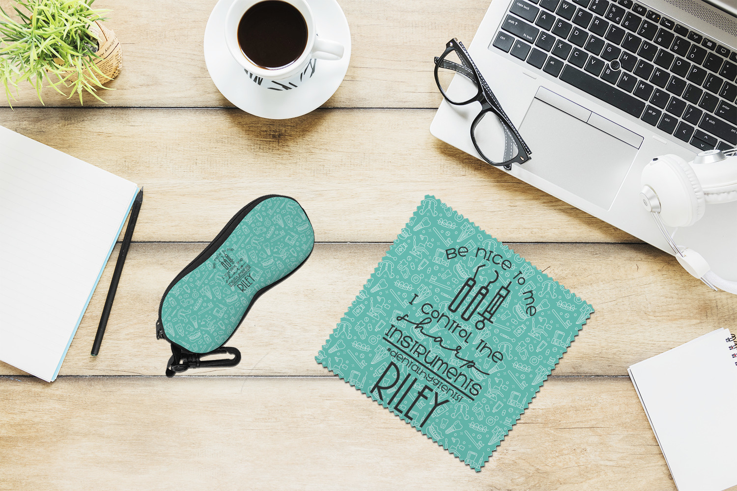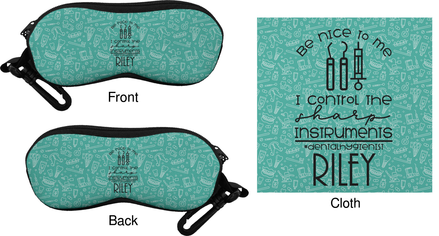 For the foreground, we used a fun quote that says "Be nice to me, I control sharp instruments #dental hygienist"Dental Hygienists bring the sparkle". We chose to personalize it with a name underneath. We used black for our color. You can customize the graphics, the colors as well as the personalization. Enjoy customizing it to make it yours.
