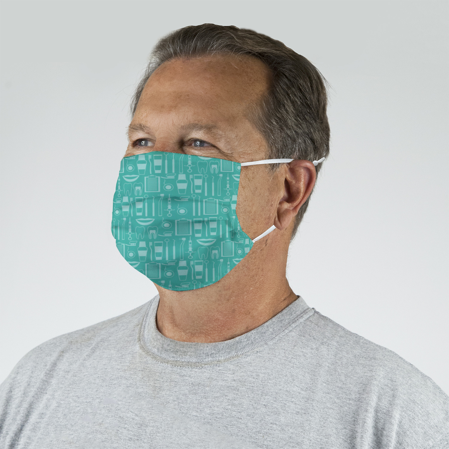 These fun face masks are 7" wide and 3.5" high. They feature pleats, adjustable ear loops, and are made with two layers of fabric. The top layer where your design is printed is a breathable polyester sheeting, while the inside layer is a soft microfiber polyester