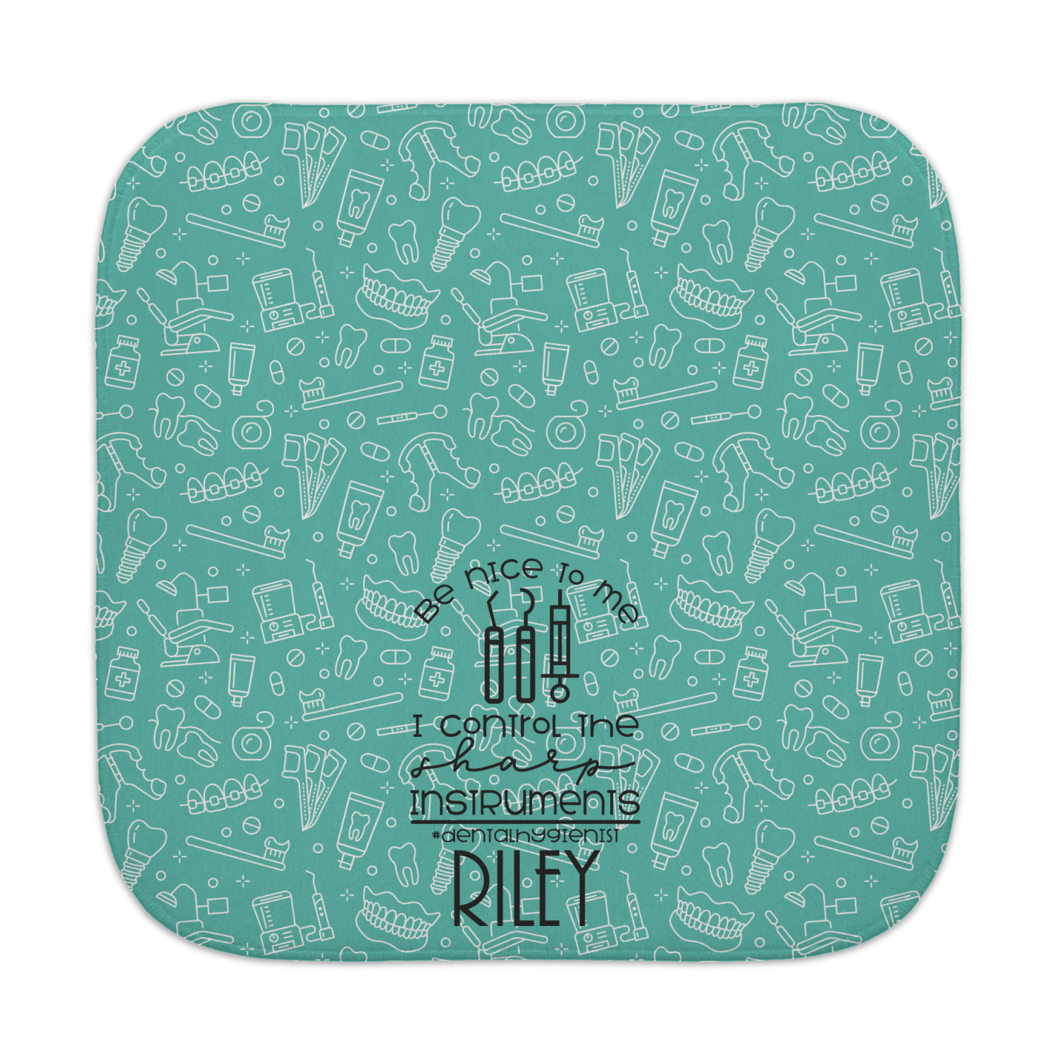We choose a scrubs green background with line drawings of dental instruments in white. Both colors can be customized. We also have other dental themed backgrounds and hundreds of fun patterns that can easily be swapped out.