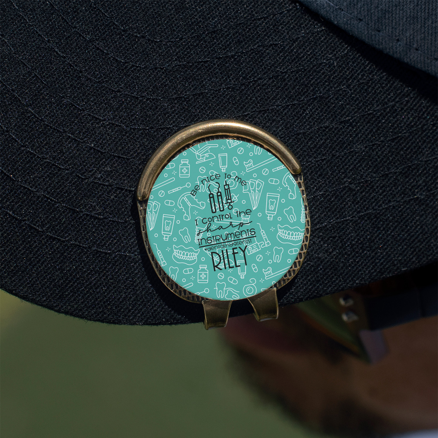 This round shaped little clip is simply 1.25" x 1.5". A clip wraps around to the back of the ball marker holder in order to be able to clip it to the bill of your hat or even your belt. The metal ball marker attaches by a magnet on the clip. Available in stainless steel natural finish or gold finish, you are sure to find one to suit your style. This makes for convenient removal when you need to use it. No more digging in your bag or pockets trying to find it!