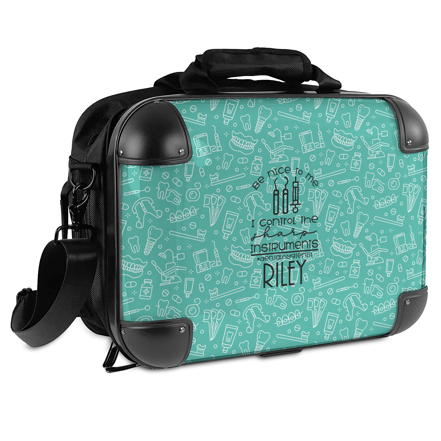 We choose a scrubs green background with line drawings of dental instruments in white. Both colors can be customized. We also have other dental themed backgrounds and hundreds of fun patterns that can easily be swapped out.