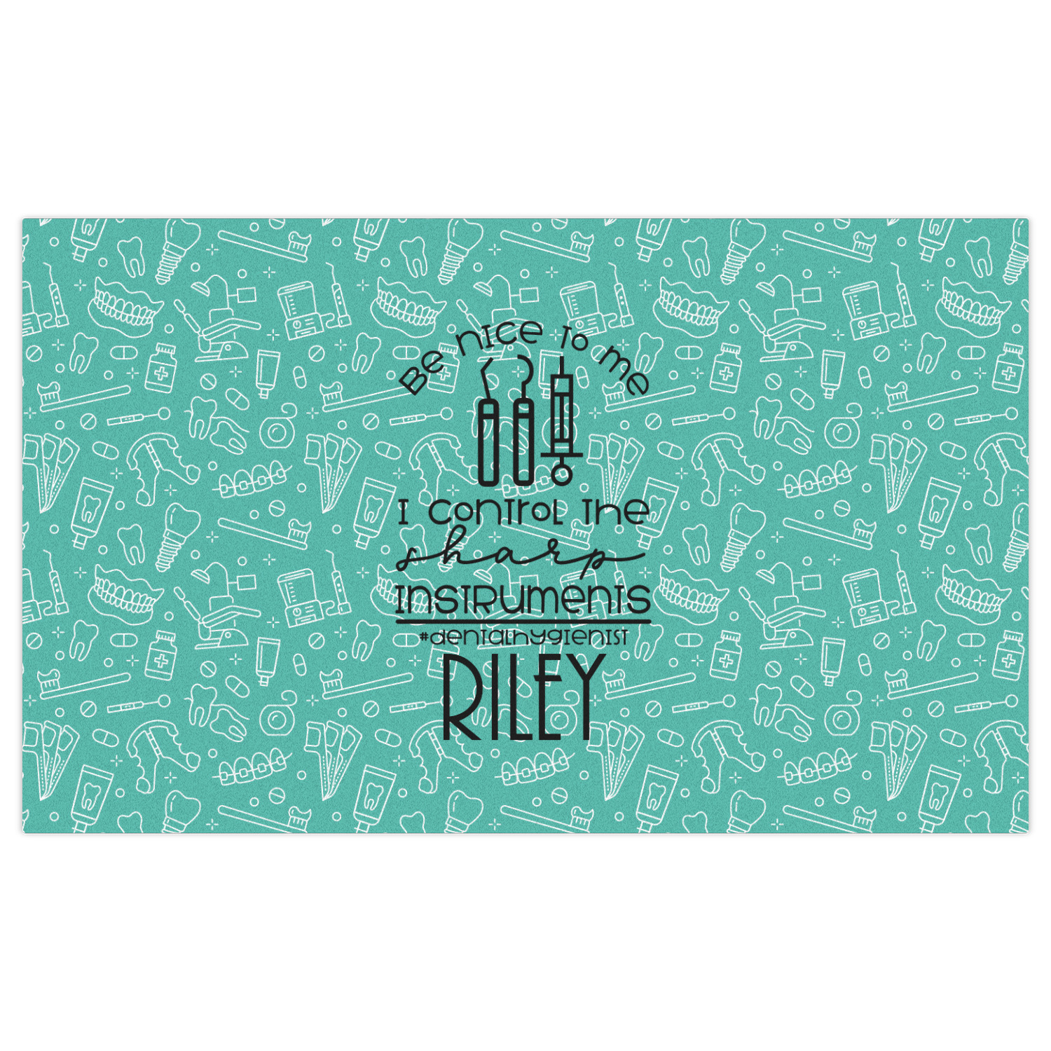 We choose a scrubs green background with line drawings of dental instruments in white. Both colors can be customized. We also have other dental themed backgrounds and hundreds of fun patterns that can easily be swapped out.
