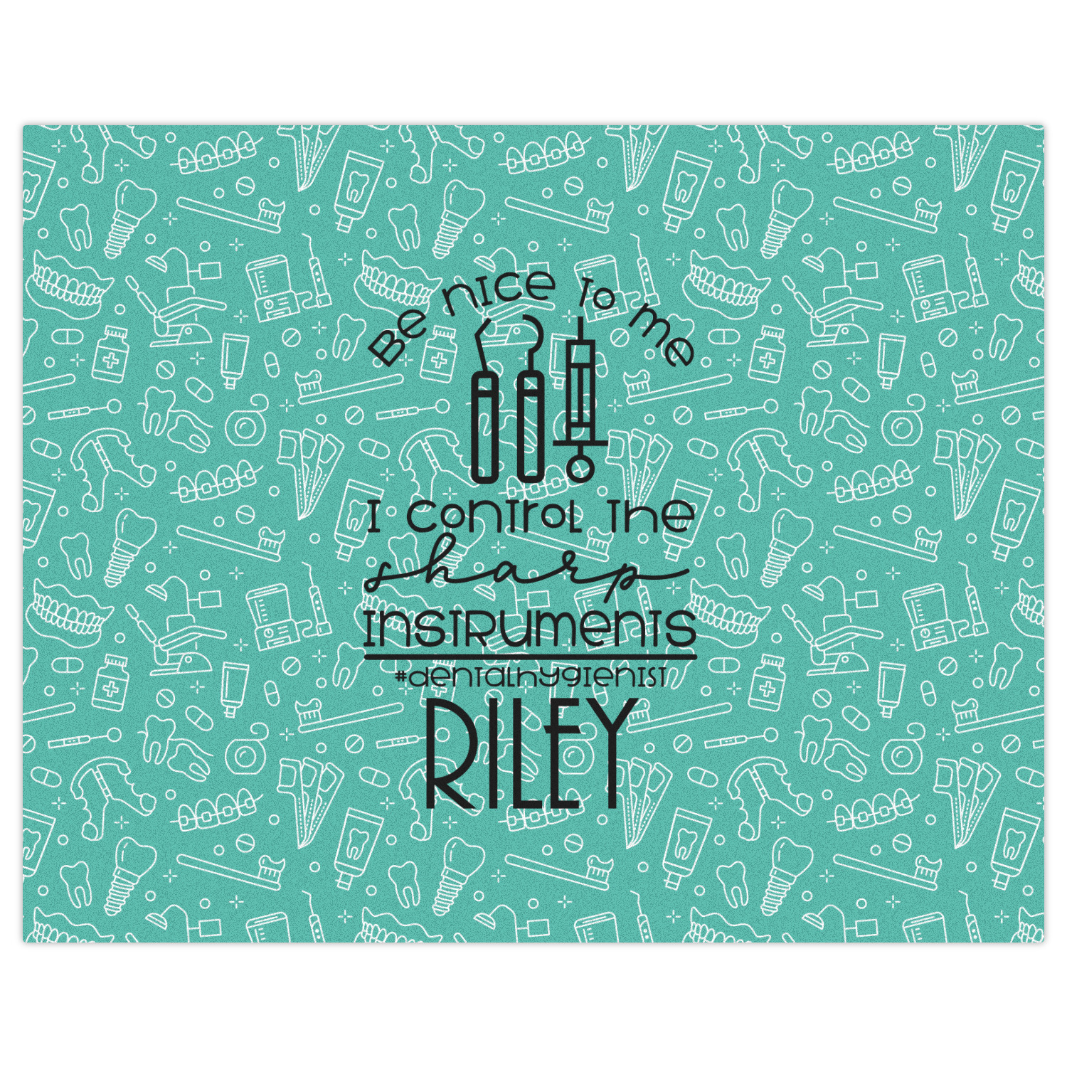 For the foreground, we used a fun quote that says "Be nice to me, I control sharp instruments #dental hygienist"Dental Hygienists bring the sparkle". We chose to personalize it with a name underneath. We used black for our color. You can customize the graphics, the colors as well as the personalization. Enjoy customizing it to make it yours.