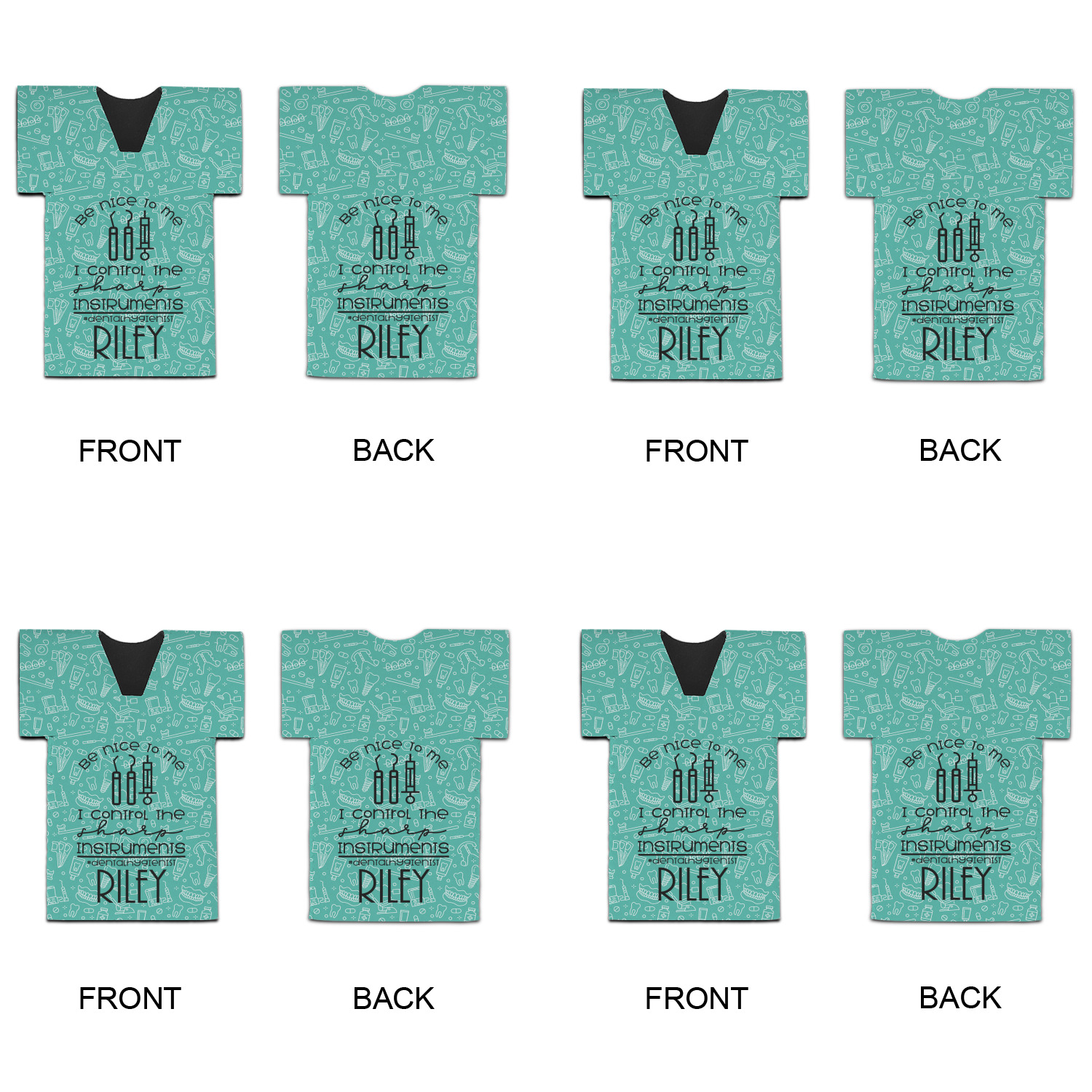 We choose a scrubs green background with line drawings of dental instruments in white. Both colors can be customized. We also have other dental themed backgrounds and hundreds of fun patterns that can easily be swapped out.