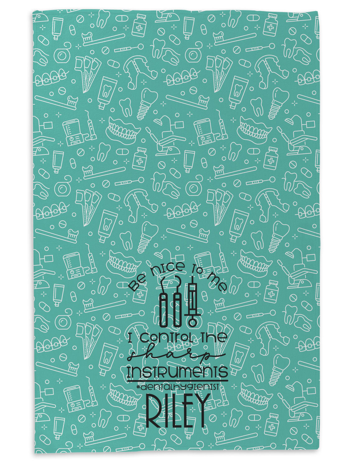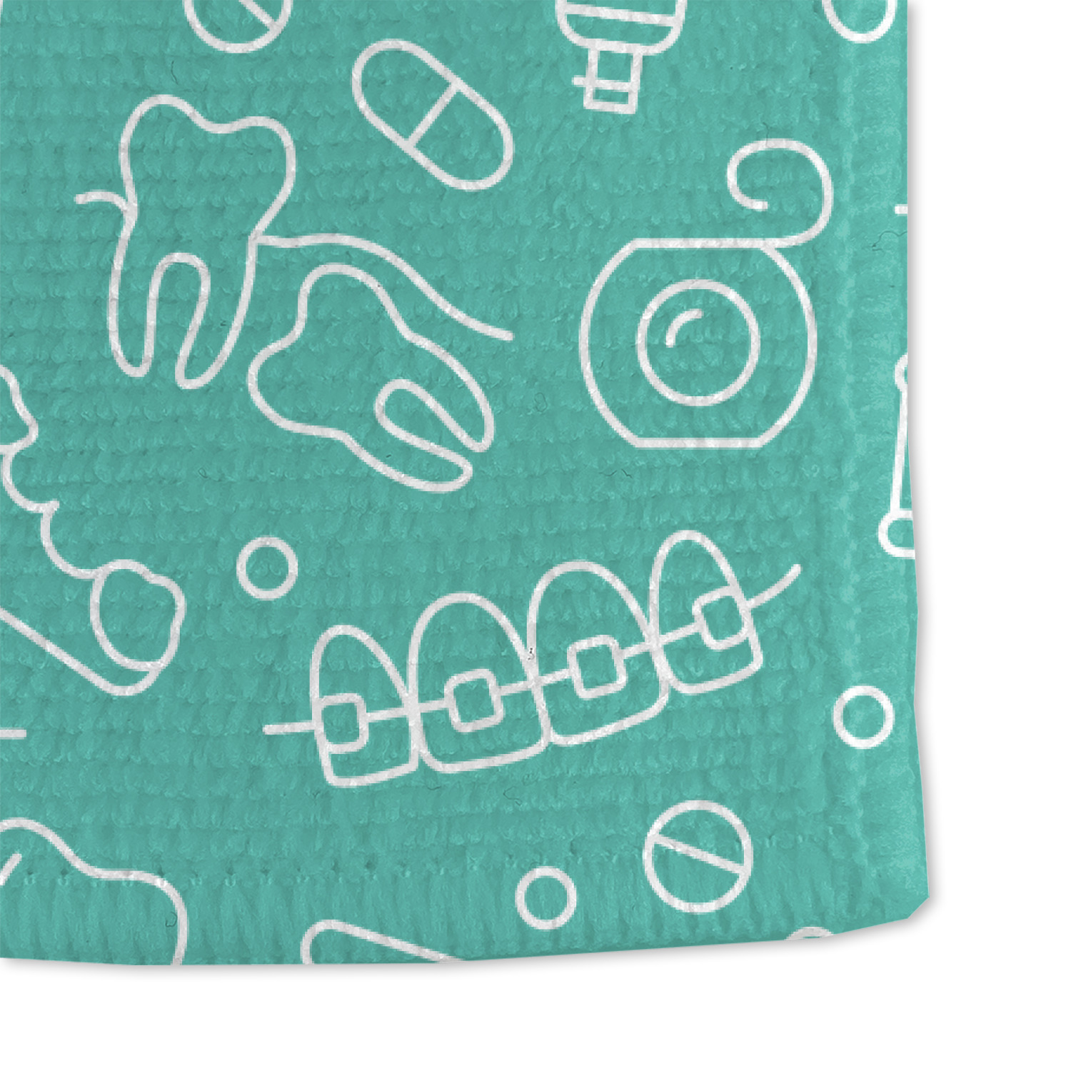 We choose a scrubs green background with line drawings of dental instruments in white. Both colors can be customized. We also have other dental themed backgrounds and hundreds of fun patterns that can easily be swapped out.