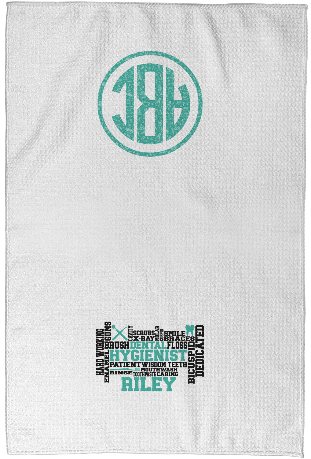 Each waffle weave kitchen towel is approximately 16 x 24 inches with your design printed on one side and the back is white.