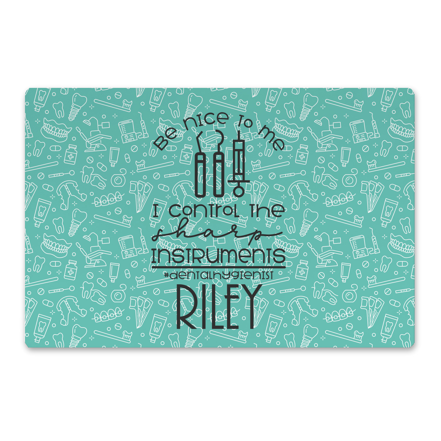 For the foreground, we used a fun quote that says "Be nice to me, I control sharp instruments #dental hygienist"Dental Hygienists bring the sparkle". We chose to personalize it with a name underneath. We used black for our color. You can customize the graphics, the colors as well as the personalization. Enjoy customizing it to make it yours.