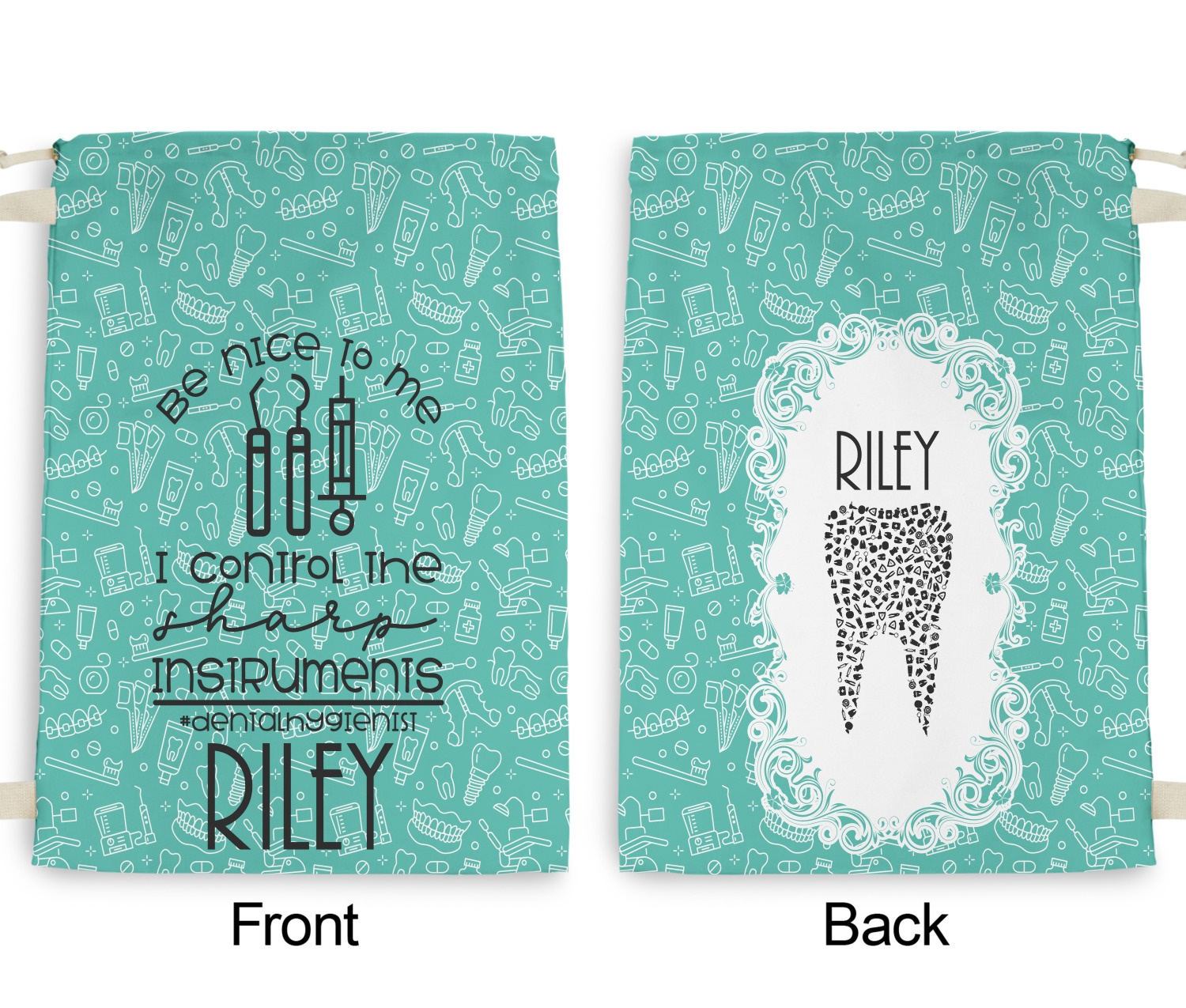 We choose a scrubs green background with line drawings of dental instruments in white. Both colors can be customized. We also have other dental themed backgrounds and hundreds of fun patterns that can easily be swapped out.
