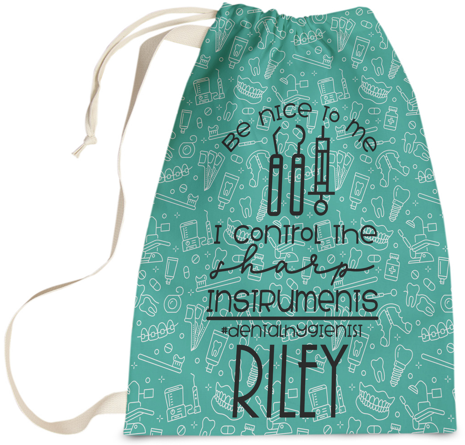 For the foreground, we used a fun quote that says "Be nice to me, I control sharp instruments #dental hygienist"Dental Hygienists bring the sparkle". We chose to personalize it with a name underneath. We used black for our color. You can customize the graphics, the colors as well as the personalization. Enjoy customizing it to make it yours.