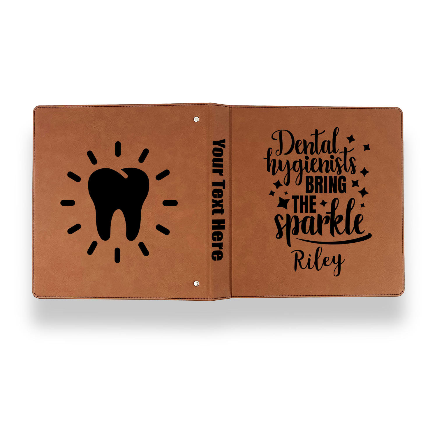 Made from a high quality faux leather covering, these binders are laser engrave with your choice of personalization. The 1" d-rings inside hold up to 175 sheets of standard 8.5" x 11" US Letter or notebook paper or 8.27" x 11.69" A4 size paper.