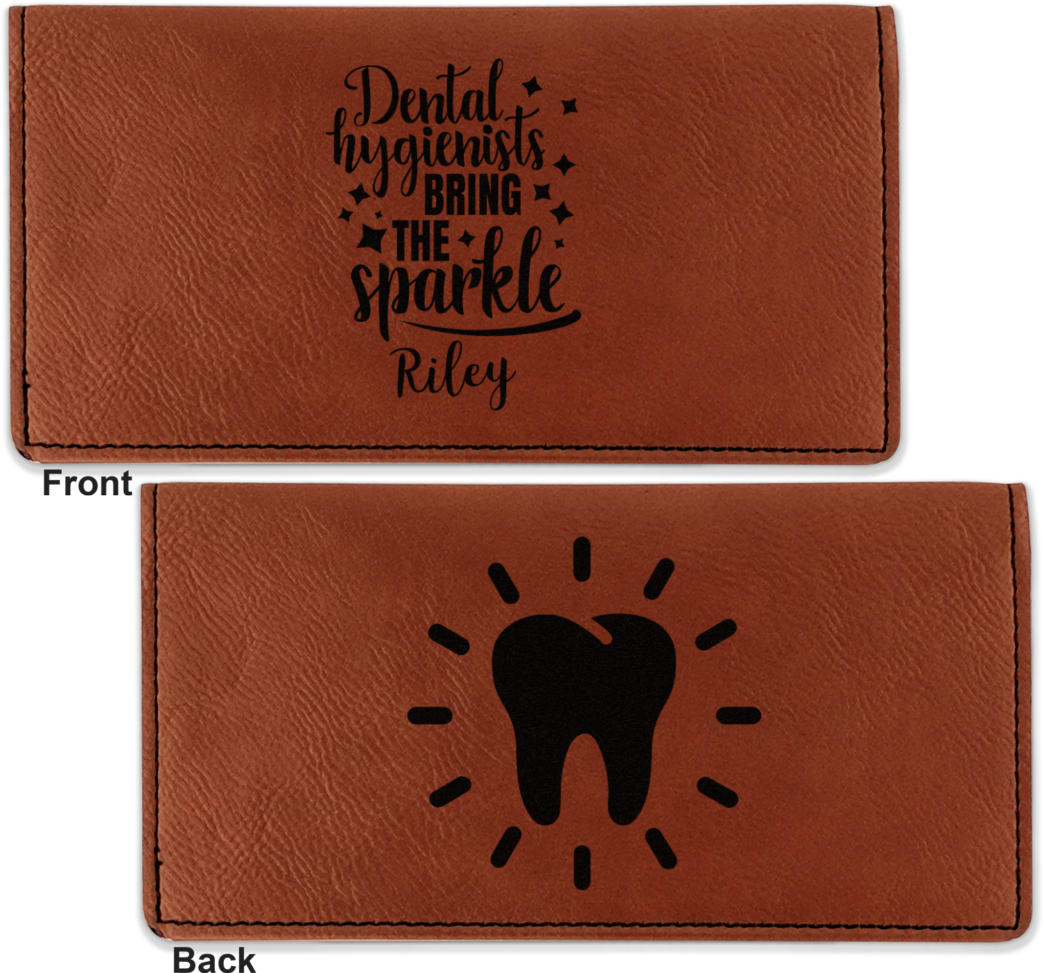 Go into our design center to start personalizing. Your checkbook cover will be laser engraved, making the graphic or text a black color. Choose a fun saying, monogram, or font to go on your checkbook cover. You have the opportunity to do it double or single sided.