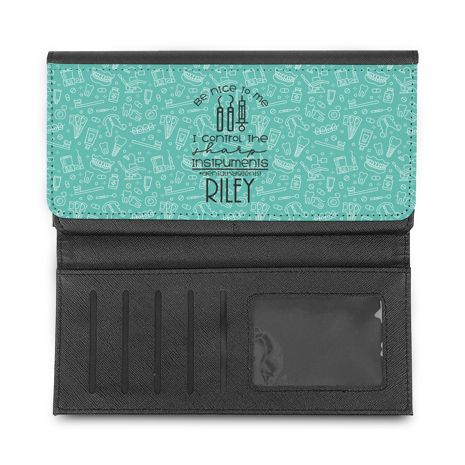 These leatherette ladies wallets can be customized with any one of our patterns (many patterns are available in multiple colors). Of course adding personalization (free) is your choice - you can include a monogram (interlocking is my favorite), a name, or one of our beautiful name and initial combinations.