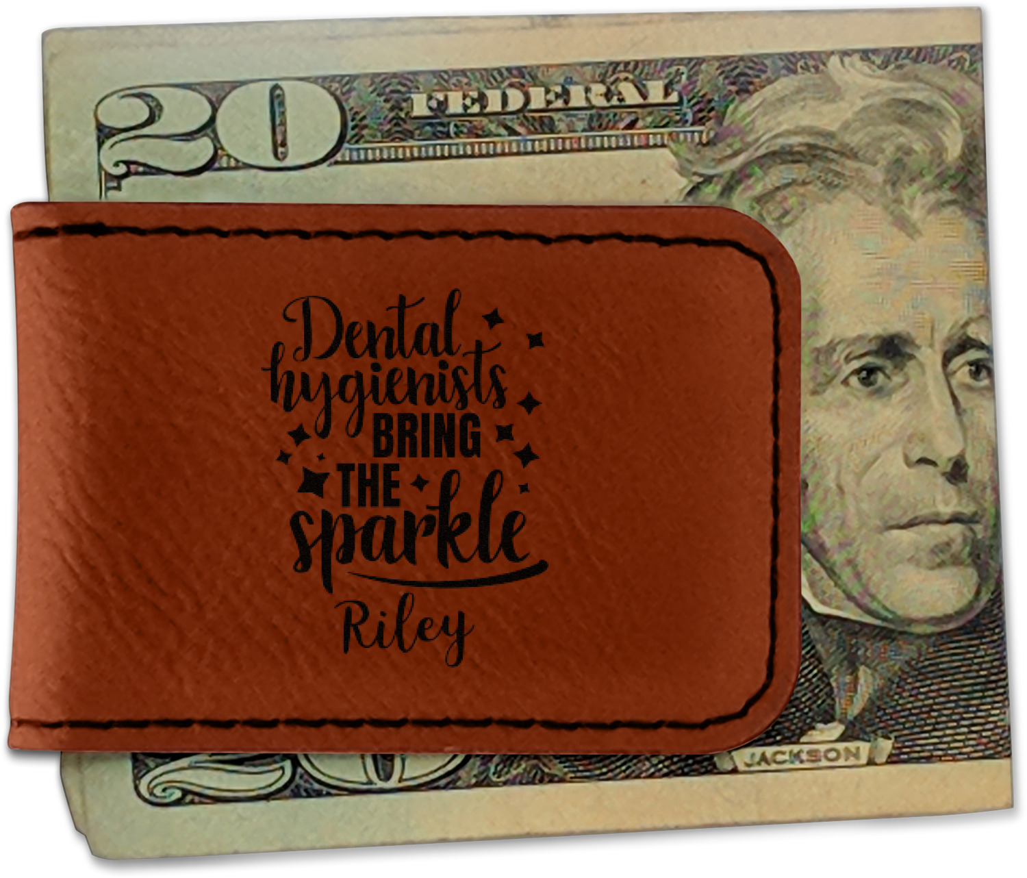 Your money clip will be laser engraved so that the design you choose will come out black. Find a fun graphic, monogram, or font to use to personalize your money clip either on just the front or the front and the back.