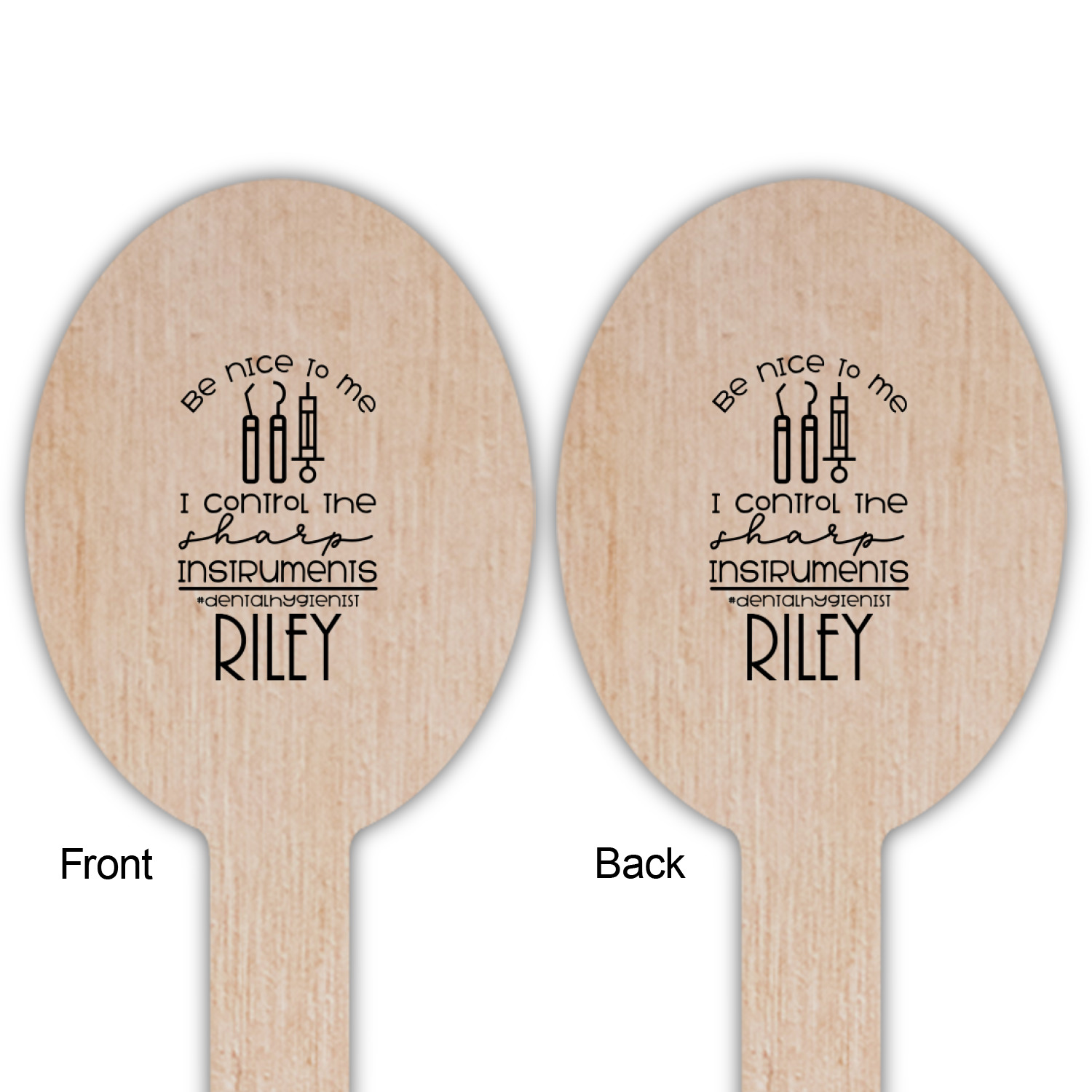 For the foreground, we used a fun quote that says "Be nice to me, I control sharp instruments #dental hygienist"Dental Hygienists bring the sparkle". We chose to personalize it with a name underneath. We used black for our color. You can customize the graphics, the colors as well as the personalization. Enjoy customizing it to make it yours.