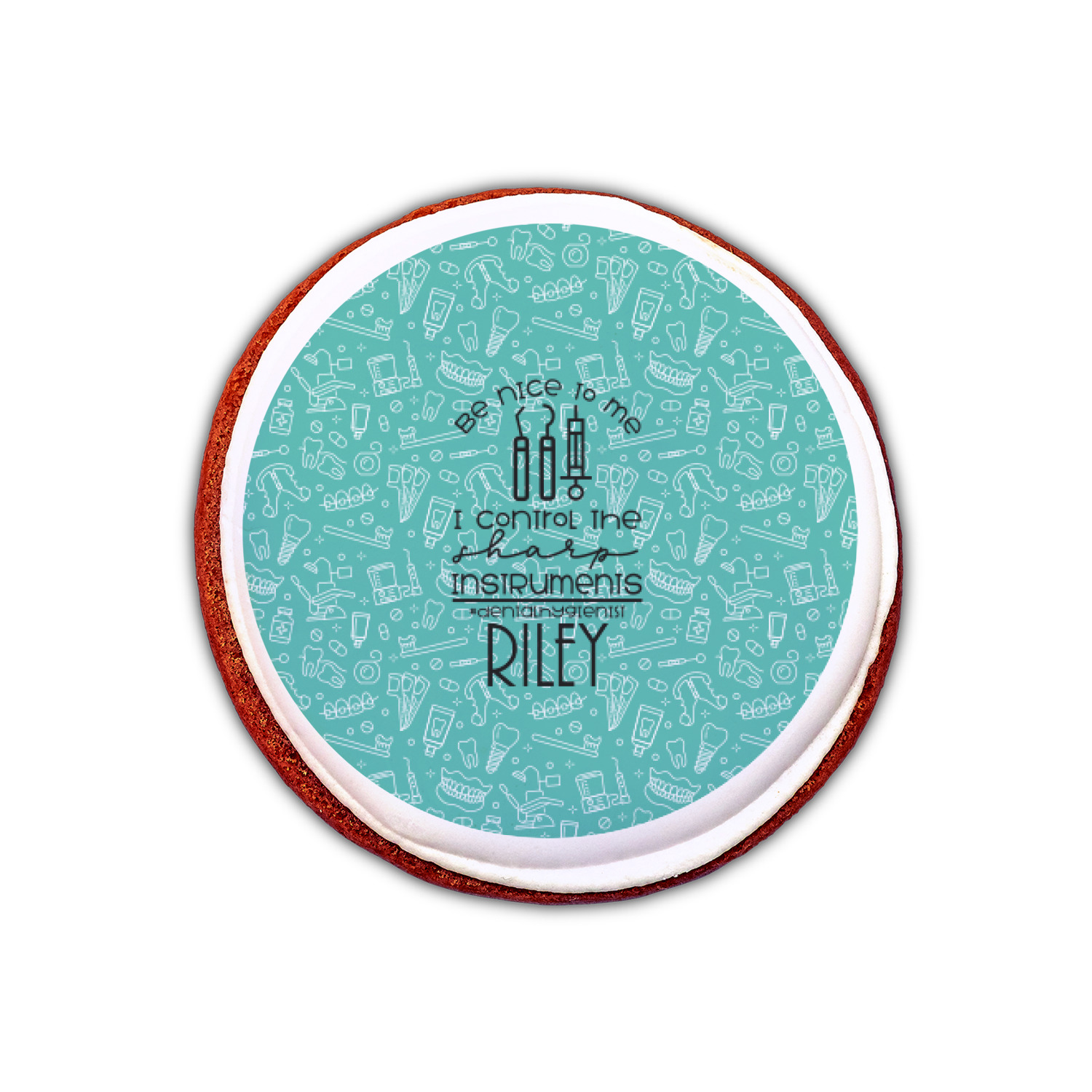 Your customized cookie toppers can be placed on top of any dessert with an icing top.The icing helps adhere the cookie topper to the dessert.