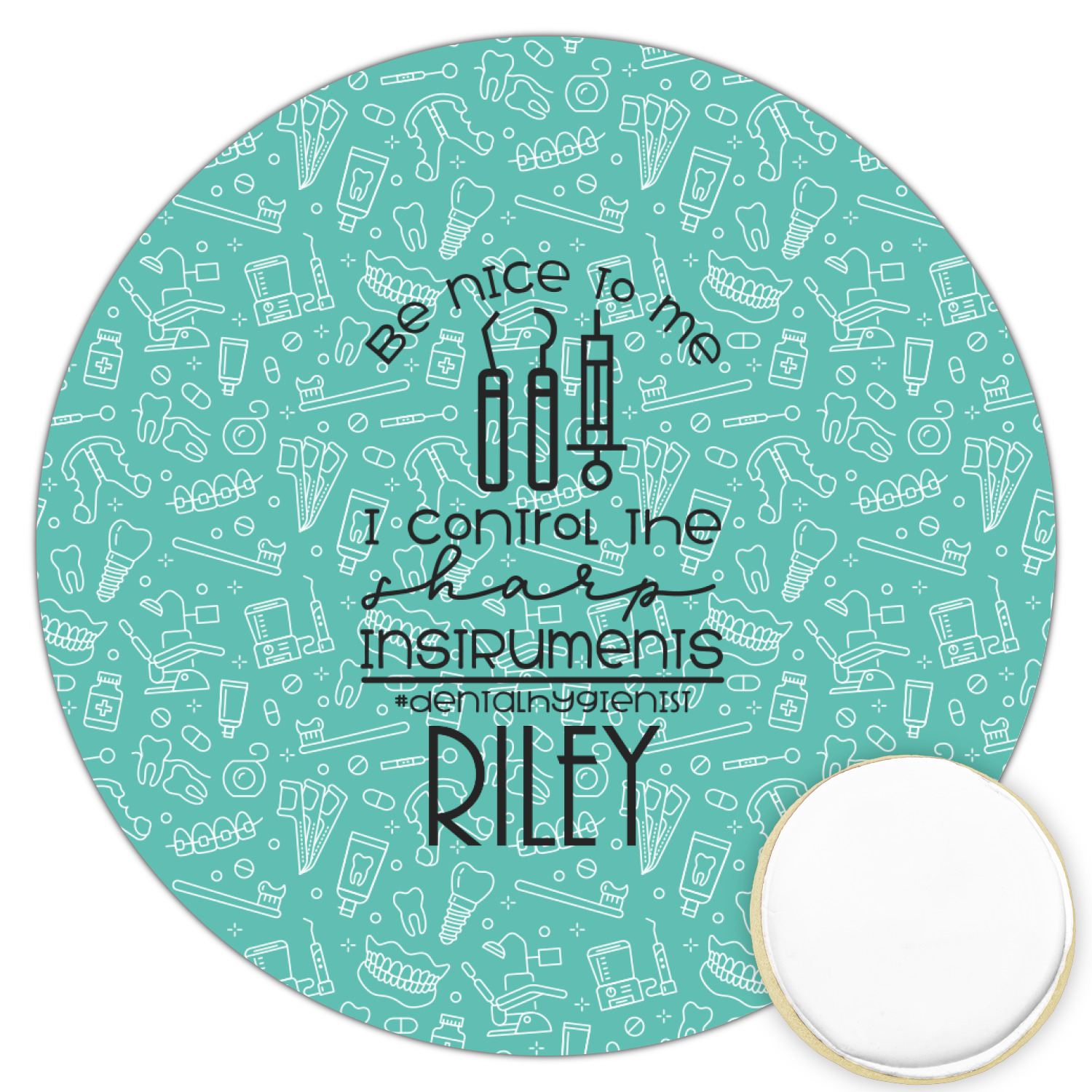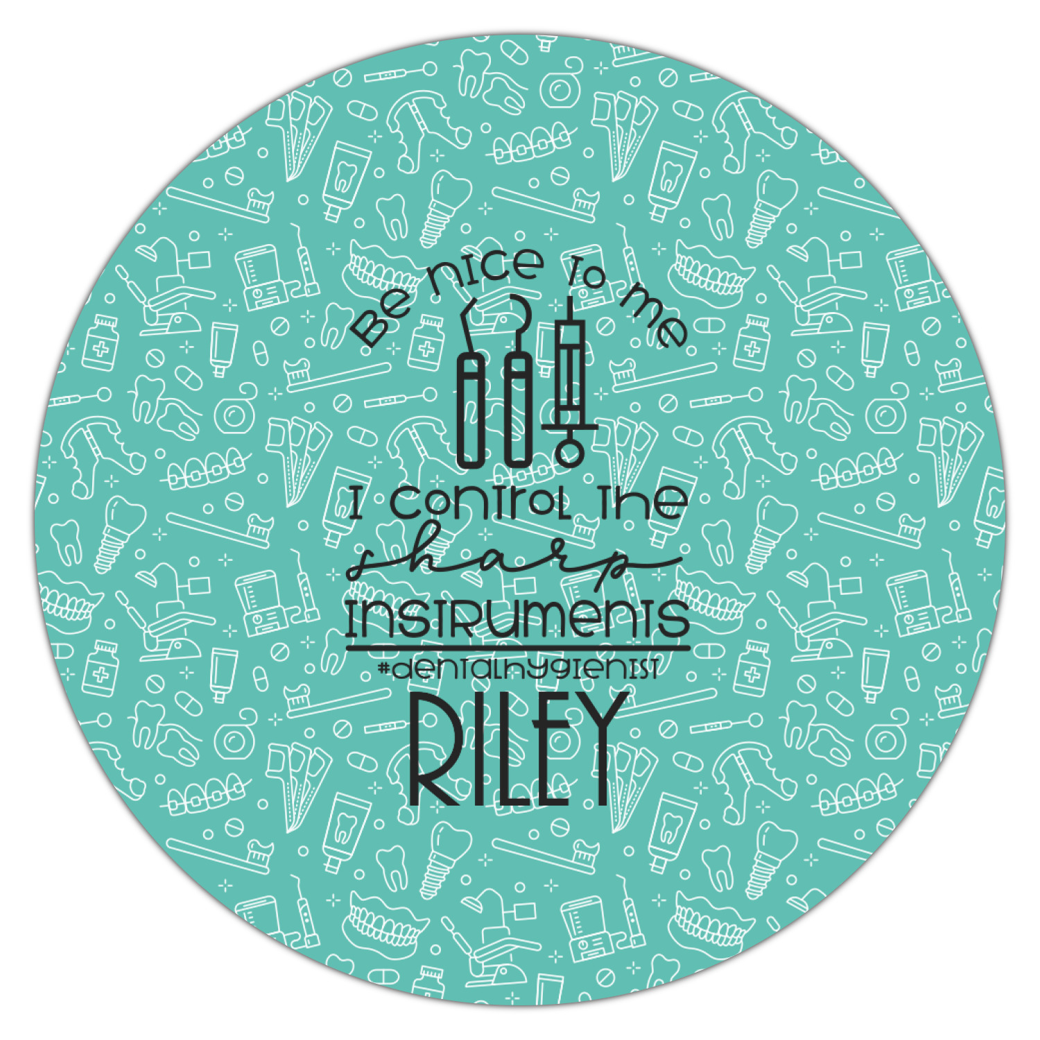 For the foreground, we used a fun quote that says "Be nice to me, I control sharp instruments #dental hygienist"Dental Hygienists bring the sparkle". We chose to personalize it with a name underneath. We used black for our color. You can customize the graphics, the colors as well as the personalization. Enjoy customizing it to make it yours.