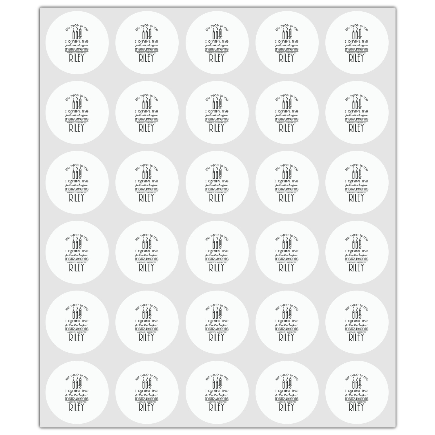 We choose a scrubs green background with line drawings of dental instruments in white. Both colors can be customized. We also have other dental themed backgrounds and hundreds of fun patterns that can easily be swapped out.