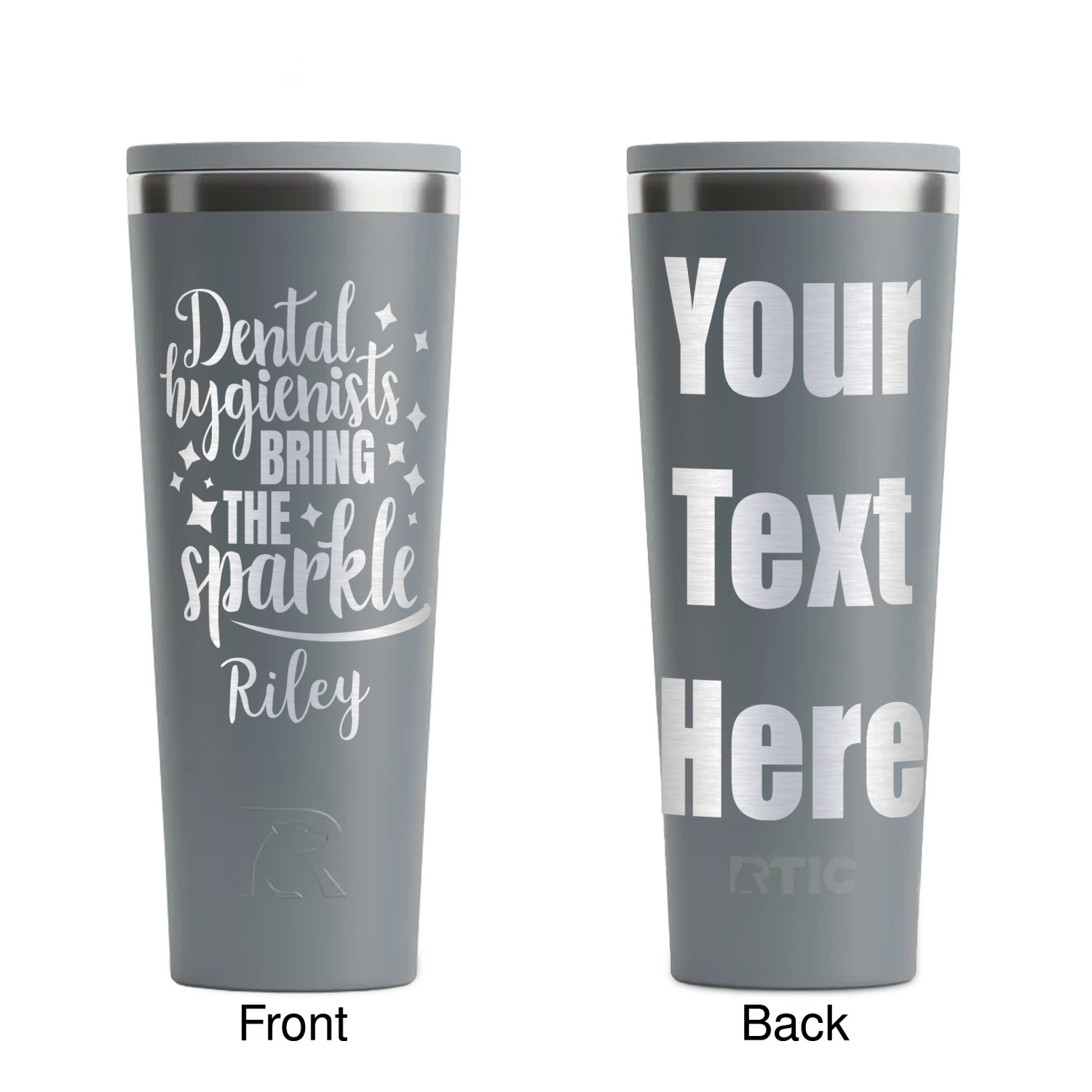 For the foreground, we used a fun quote that says "Be nice to me, I control sharp instruments #dental hygienist"Dental Hygienists bring the sparkle". We chose to personalize it with a name underneath. We used black for our color. You can customize the graphics, the colors as well as the personalization. Enjoy customizing it to make it yours.