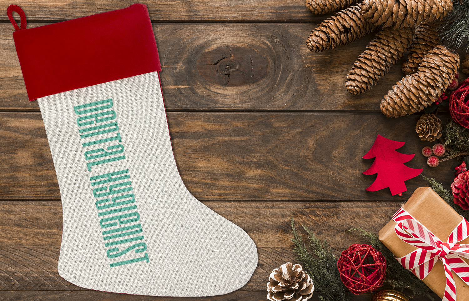 Our classic red stockings are made from a soft, yet durable polyester material perfect for any stocking stuffer! The front of our Christmas stockings have a linen front that boldly displays your custom design accented with a lush red cuff resting all around the stocking. Each stocking is approximately 18x12 with a durable cotton rope loop for hanging.