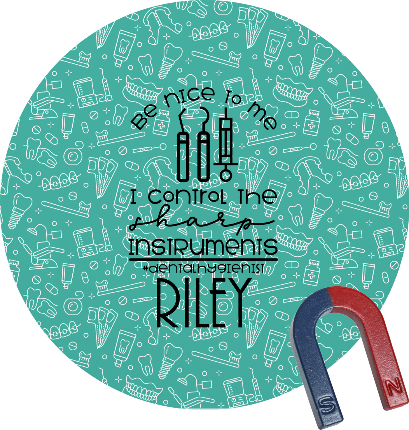 For the foreground, we used a fun quote that says "Be nice to me, I control sharp instruments #dental hygienist"Dental Hygienists bring the sparkle". We chose to personalize it with a name underneath. We used black for our color. You can customize the graphics, the colors as well as the personalization. Enjoy customizing it to make it yours.