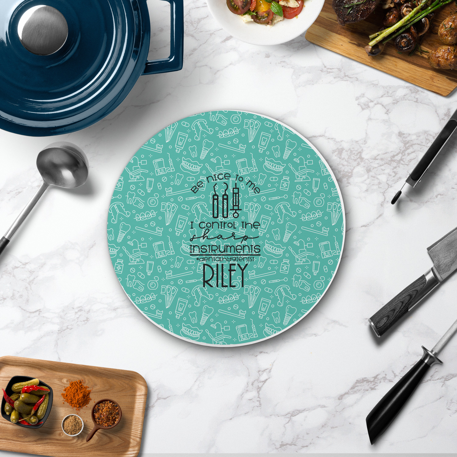 The round trivets can be customized with your own design, your own photo, or your own logo. You can add personalization, like a monogram, family name or initial to your uploaded design / art. You can also customize one of our designs and change the patterns, colors, personalization, fonts etc.