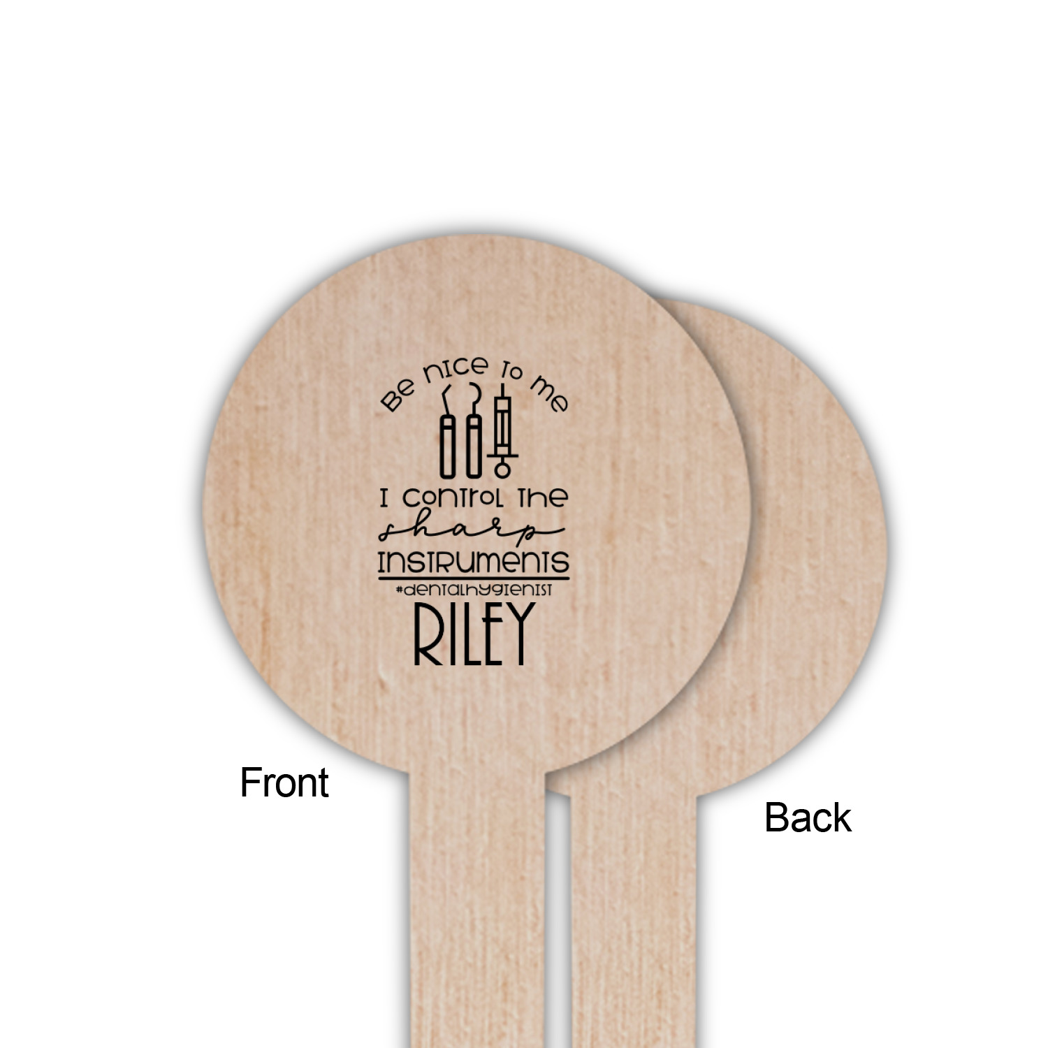 For the foreground, we used a fun quote that says "Be nice to me, I control sharp instruments #dental hygienist"Dental Hygienists bring the sparkle". We chose to personalize it with a name underneath. We used black for our color. You can customize the graphics, the colors as well as the personalization. Enjoy customizing it to make it yours.