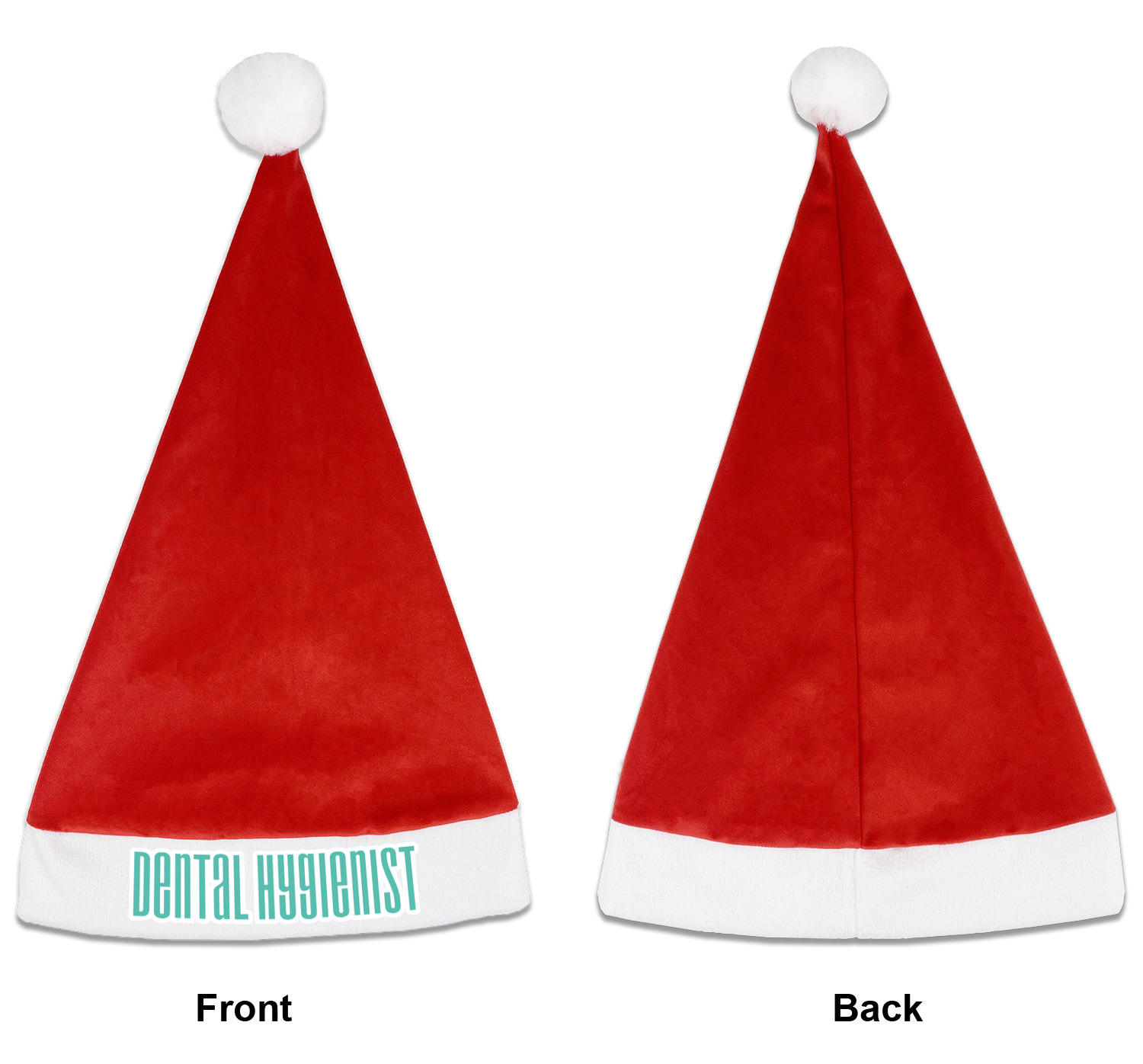 Our Santa hats are a soft, velvety polyester material. These customizable Santa hats are a classic red with white brimming and pom pom ball hanging off the hat tail just like Santa Claus! Each personalized Santa hat is approximately 17.5 L x 11.8 W. We offer two different styles to print your designs on the white brim - front or front & back.