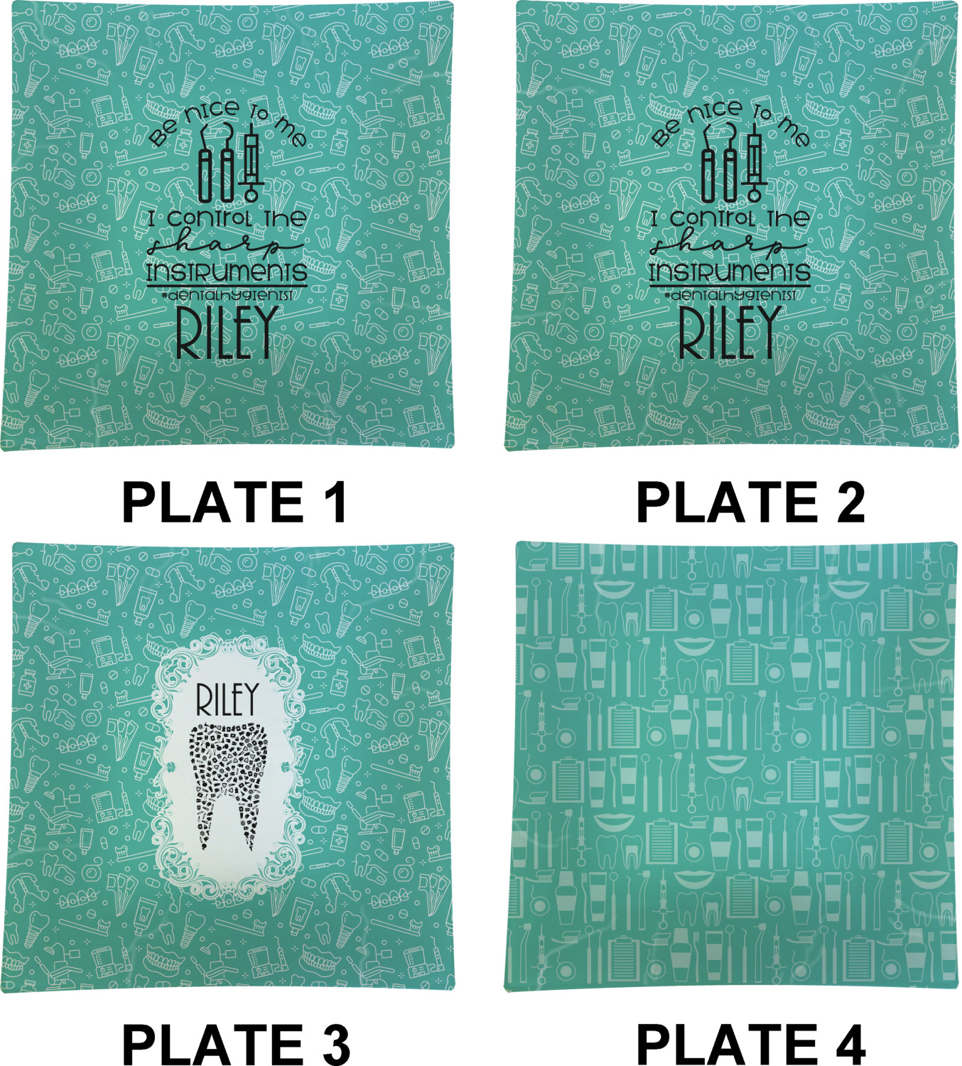 We choose a scrubs green background with line drawings of dental instruments in white. Both colors can be customized. We also have other dental themed backgrounds and hundreds of fun patterns that can easily be swapped out.