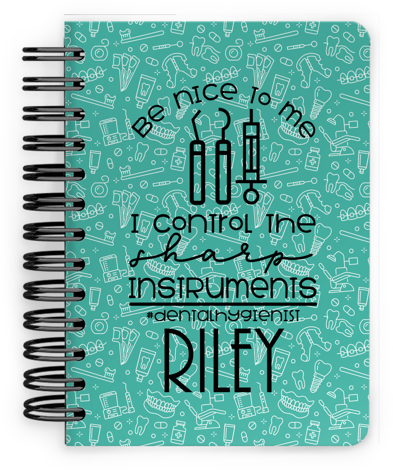 For the foreground, we used a fun quote that says "Be nice to me, I control sharp instruments #dental hygienist"Dental Hygienists bring the sparkle". We chose to personalize it with a name underneath. We used black for our color. You can customize the graphics, the colors as well as the personalization. Enjoy customizing it to make it yours.
