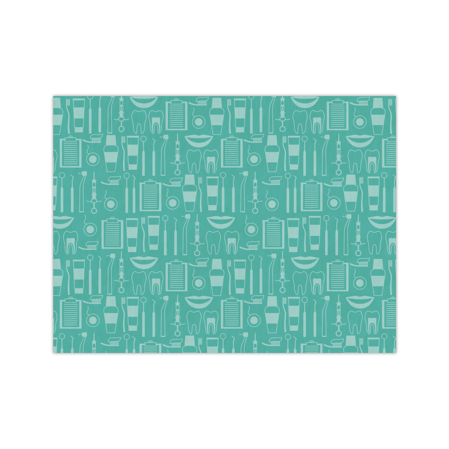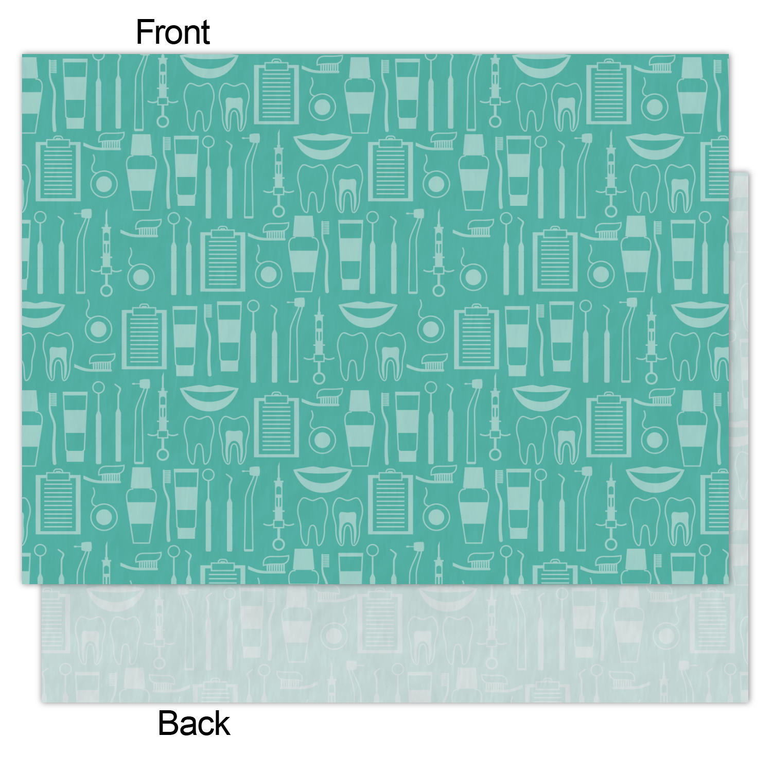 We choose a scrubs green background with line drawings of dental instruments in white. Both colors can be customized. We also have other dental themed backgrounds and hundreds of fun patterns that can easily be swapped out.