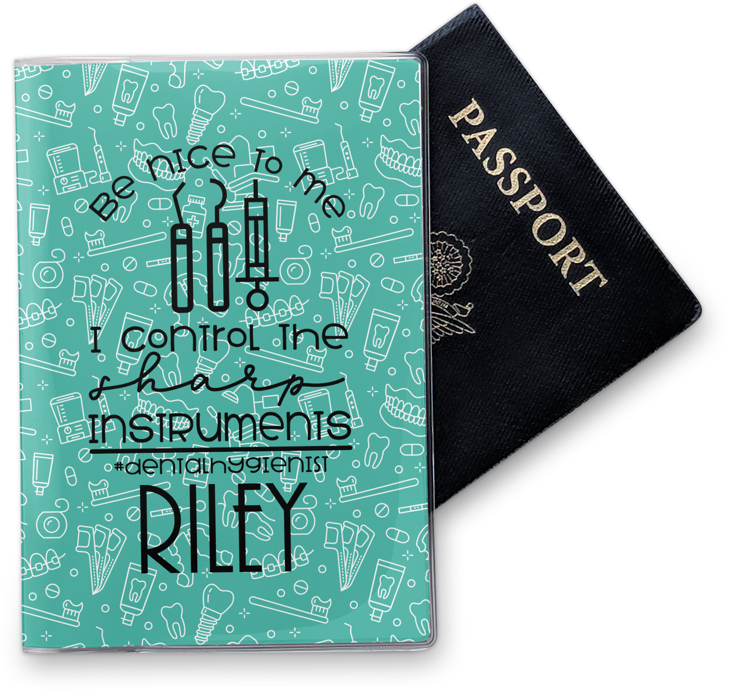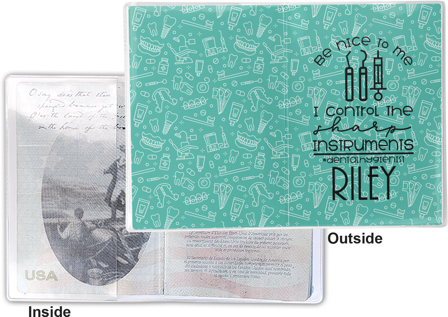 This cover is made of a sturdy clear vinyl with a personalized vinyl insert inside. There is a large and a small pocket on either side to hold the covers of your passport easily and firmly. The passport holder is approximately 7.5" x 5.25", the perfect size to snugly fit your passport. This slim cover is the perfect way to protect your passport without being one more bulky item you have to carry.