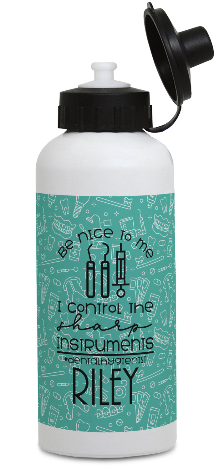 For the foreground, we used a fun quote that says "Be nice to me, I control sharp instruments #dental hygienist"Dental Hygienists bring the sparkle". We chose to personalize it with a name underneath. We used black for our color. You can customize the graphics, the colors as well as the personalization. Enjoy customizing it to make it yours.