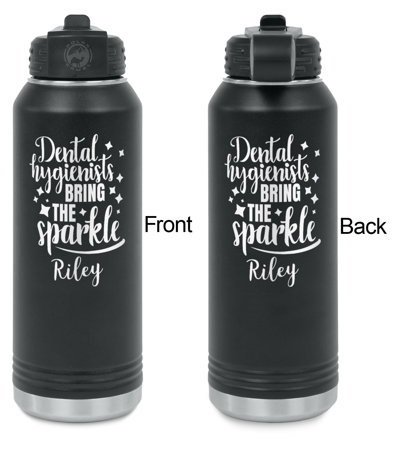 Our laser engraved stainless steel water bottles are designed for on the go lifestyle. These water bottles are perfect for the gym, the office, traveling, camping, hiking etc.