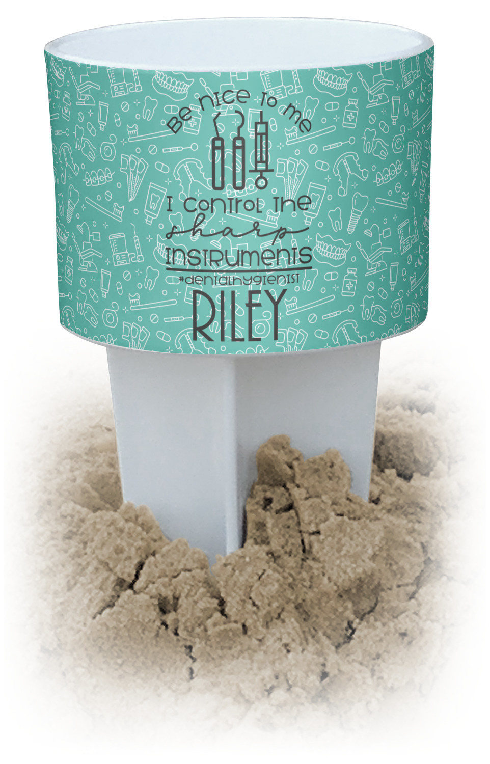 This cup holder has a large stake at its bottom that anchors it to the sand or ground below, while the cup holder rests above the stake. The entire drink holder is made of durable plastic and displays your customization around the cup holder portion. We sell these personalized beach spikers in two different colors: black and white.