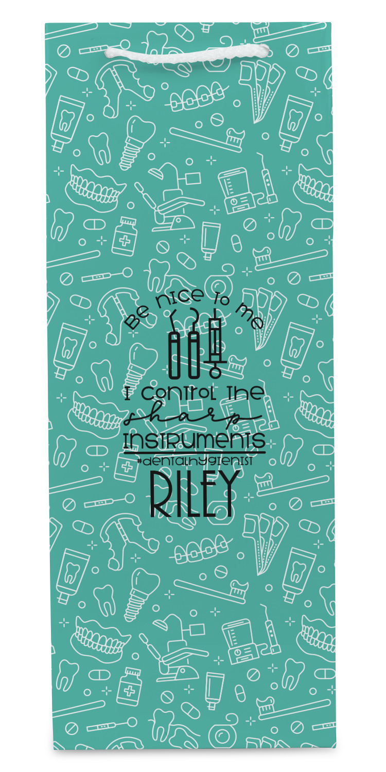 For the foreground, we used a fun quote that says "Be nice to me, I control sharp instruments #dental hygienist"Dental Hygienists bring the sparkle". We chose to personalize it with a name underneath. We used black for our color. You can customize the graphics, the colors as well as the personalization. Enjoy customizing it to make it yours.