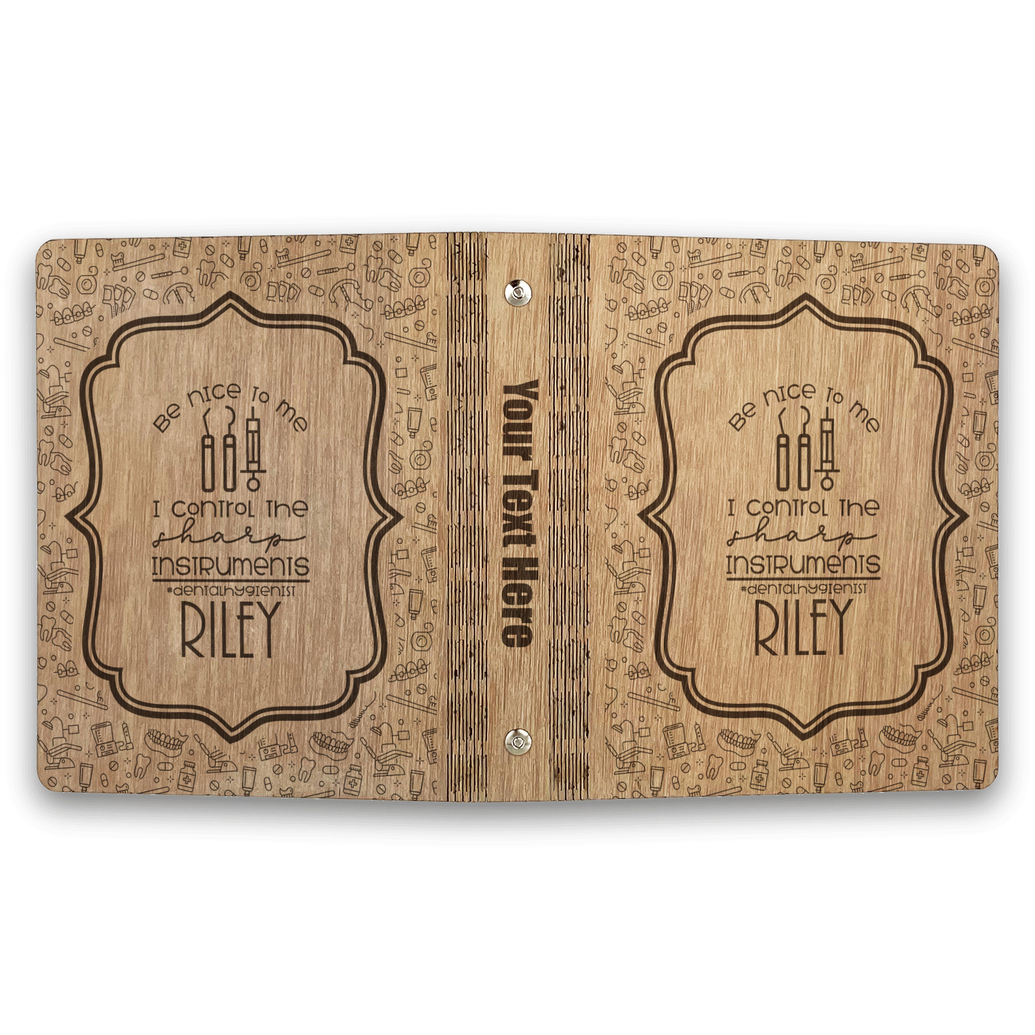 Made from premium hardwood, these are laser engraved then polished with wax to give a nice sheen and smooth feel to the product. The inside of the binders are finished with a faux leather material which is bonded to the inside of the wood to strengthen the wood and give the inside the same refined finish. The rustic brown and gold leather material adds a nice classic touch to the binders.