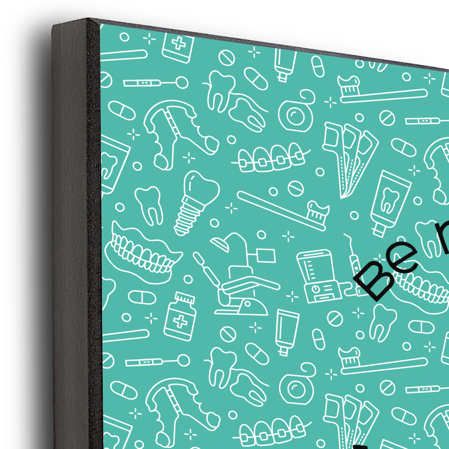 We choose a scrubs green background with line drawings of dental instruments in white. Both colors can be customized. We also have other dental themed backgrounds and hundreds of fun patterns that can easily be swapped out.