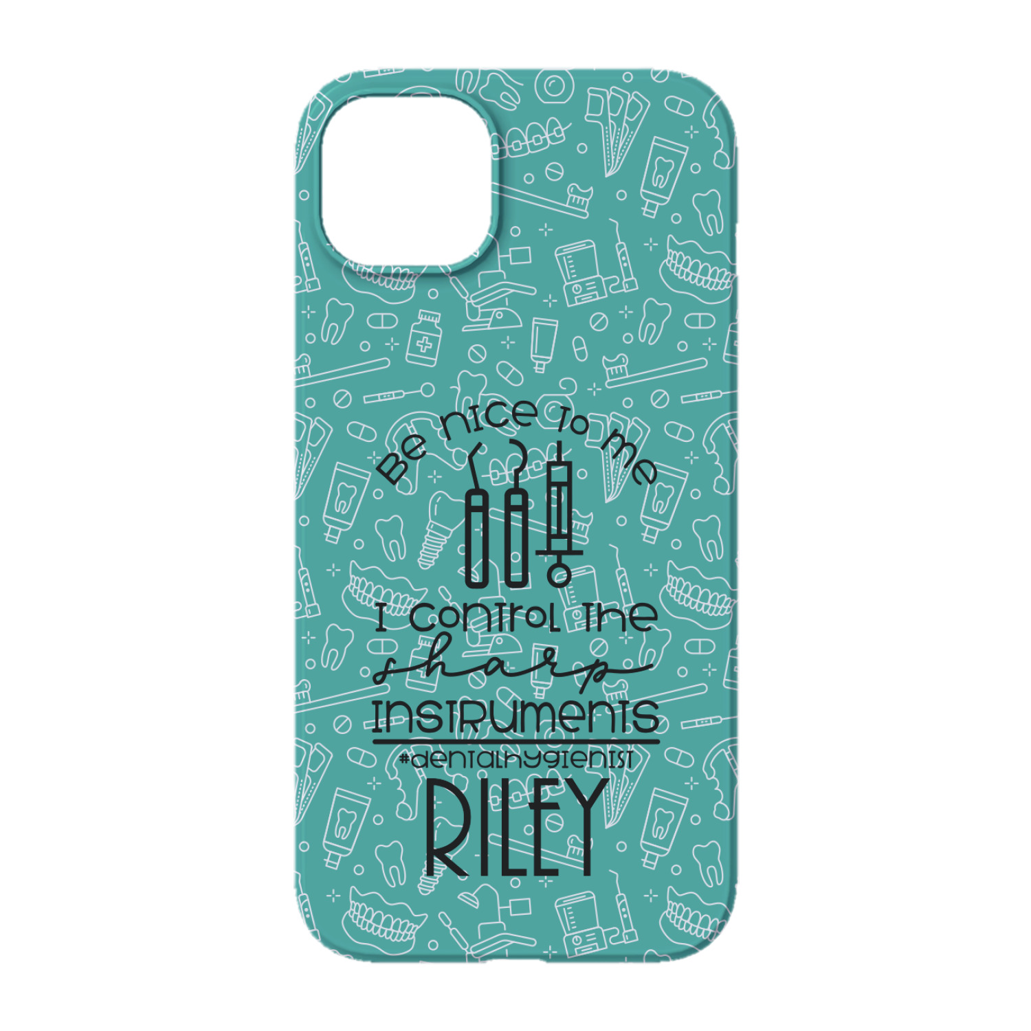 For the foreground, we used a fun quote that says "Be nice to me, I control sharp instruments #dental hygienist"Dental Hygienists bring the sparkle". We chose to personalize it with a name underneath. We used black for our color. You can customize the graphics, the colors as well as the personalization. Enjoy customizing it to make it yours.
