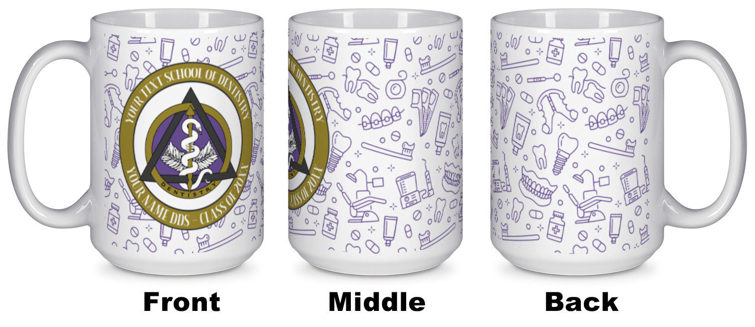 This design features the dental insignia (aka emblem, symbol, logo) at the center with personalization in a circle around the emblem.You can customize the name of the dental school, as well as the name of the dentist and the year they graduated.