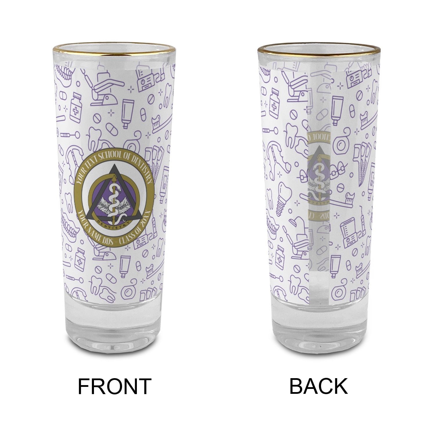 These glass shooter glasses are printed in full color with the design of your choice. These are a tall shooter 2 oz size and stand 4" tall. The print is a full wrap design to boldly display your personalization.
