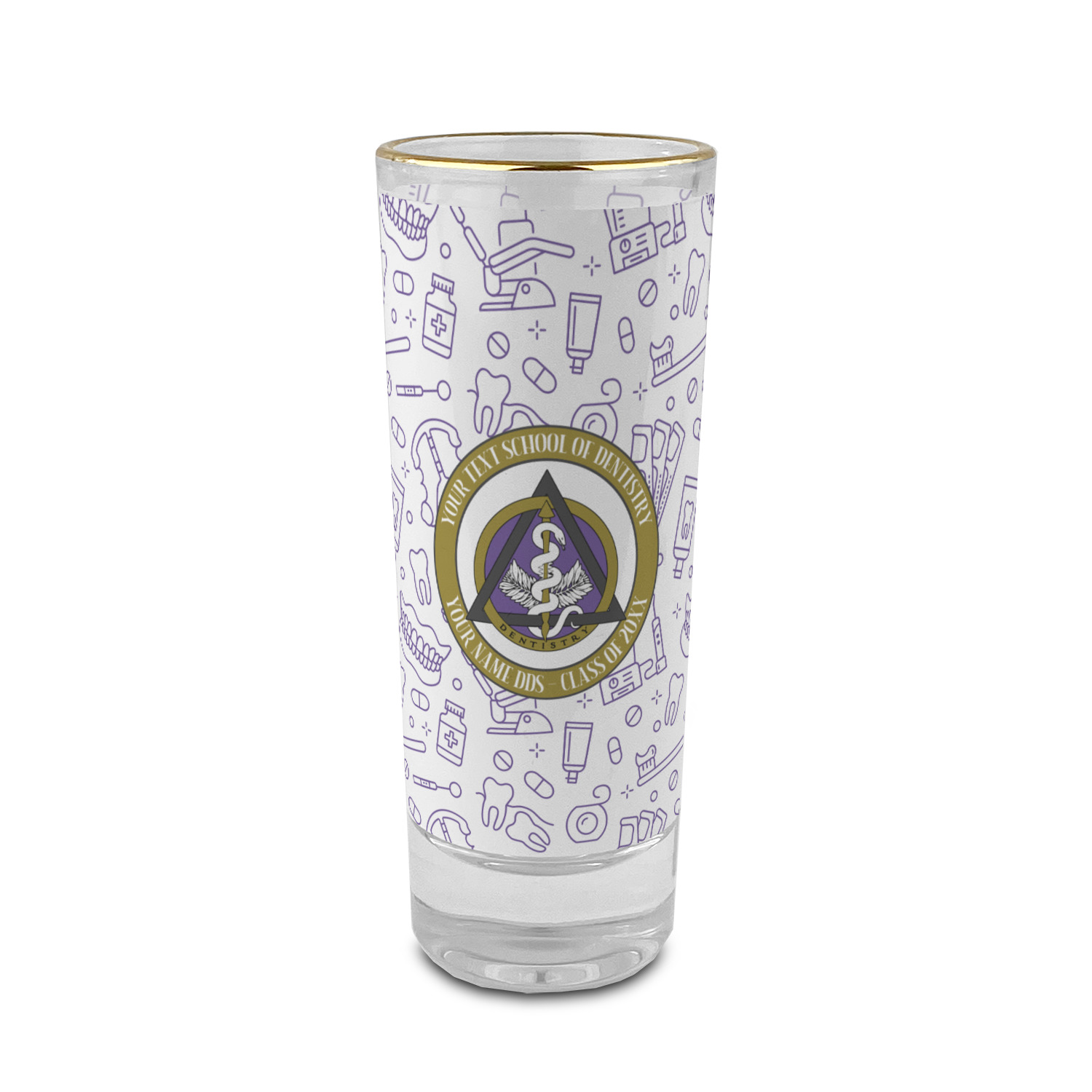 These glass shooter glasses are printed in full color with the design of your choice. These are a tall shooter 2 oz size and stand 4" tall. The print is a full wrap design to boldly display your personalization.