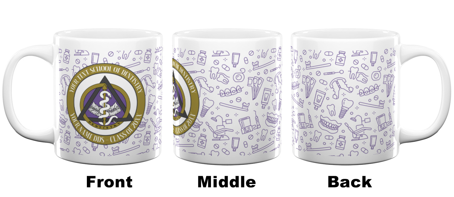This design features the dental insignia (aka emblem, symbol, logo) at the center with personalization in a circle around the emblem.You can customize the name of the dental school, as well as the name of the dentist and the year they graduated.